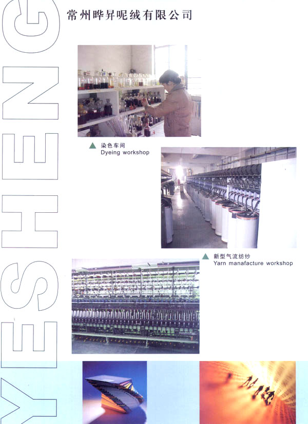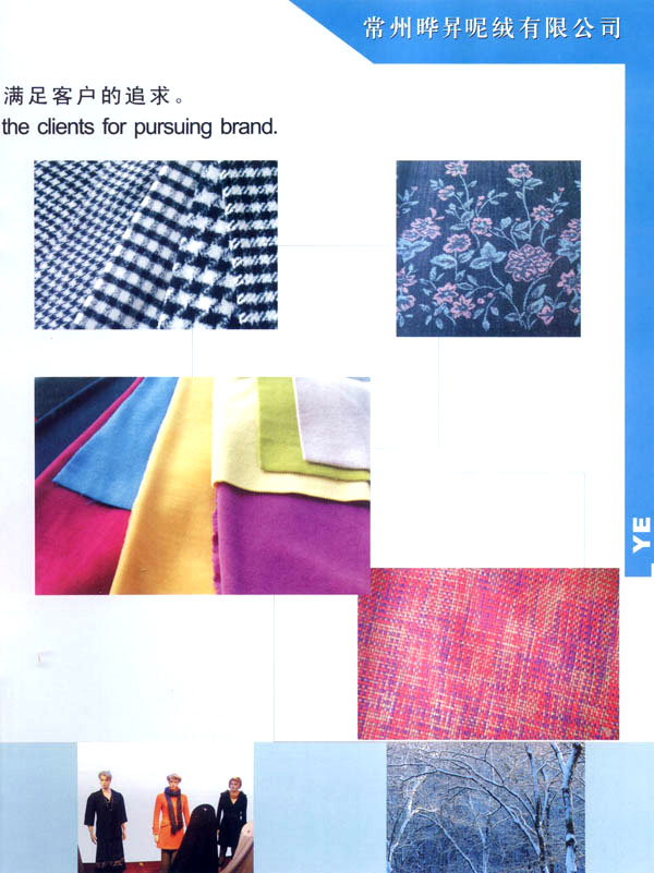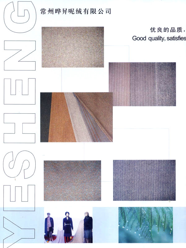 我廠成立于1999年,占地面積占60000平方米。固定資產(chǎn)有6000萬元。年銷售額達(dá)到1億元,全廠職工有600余人,技術(shù)員工超過80人,我廠主要經(jīng)營以粗毛紡為主的各式面料,以外銷為主,有一條完整的流水生產(chǎn)線,從原料一染色一紡紗一織造一后整理。我廠擁有12個染缸,日產(chǎn)量為6噸,精紡3600錠,粗紡8個臺套,劍桿織機(jī)60臺,后整理有全套精粗紡加工設(shè)備。主要產(chǎn)品有:羊絨,粗花呢,免羊毛,雙面呢,法蘭絨,精紡花呢,維羅呢,阿爾巴卡等,以及各類格子花呢。近年來本企業(yè)利用地區(qū)優(yōu)勢勢力開發(fā)新品,在原有的基礎(chǔ)上開發(fā)出各種備受親睞的花式呢料。如格子花呢,緞染花呢,粗毛絨呢,提花呢,并于2000年通過ISO9002認(rèn)證。本廠產(chǎn)品主要銷往歐洲,日本,韓國,法國,加拿大,美國,歡迎廣大客戶前來垂詢合作。本廠有志與世界的品牌建立良好的合作關(guān)系。