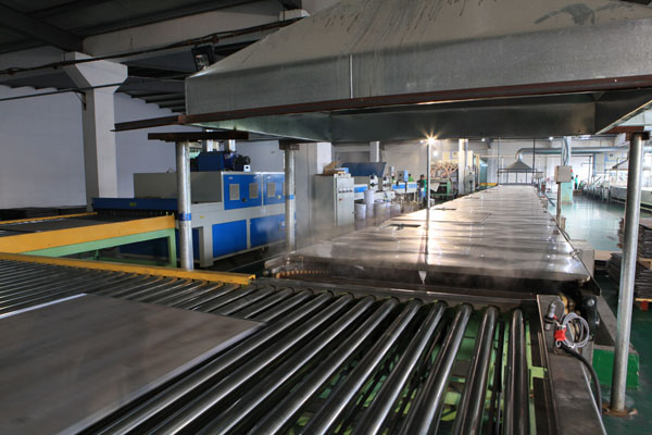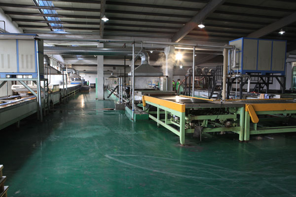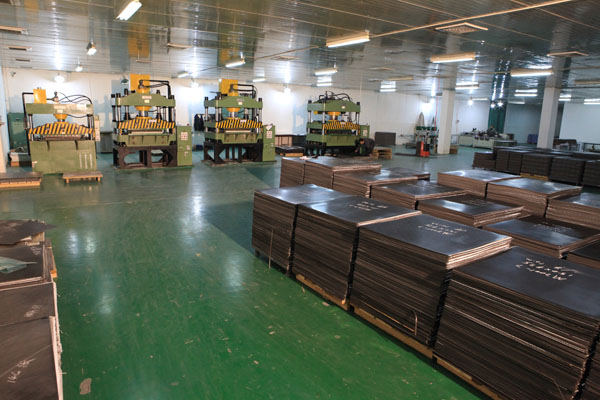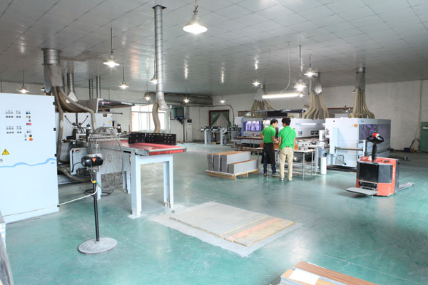 公司目前有4條專業(yè)PVC地板線,主要設(shè)備包括;全自動投料設(shè)備2套、,四輥密煉、開練機(jī)4套,淋膜回火線5條,各種規(guī)格的油壓機(jī)39組、進(jìn)口豪邁開槽線4條,智能化沖床12臺,每天可生產(chǎn)20000㎡左右的各種規(guī)格地板,每月出口近300個集裝箱貨柜至世界各地。