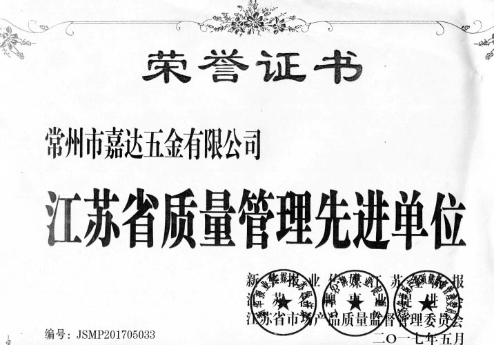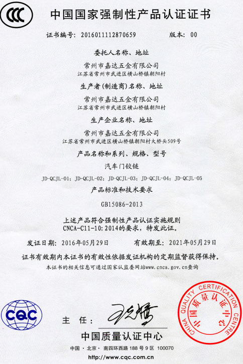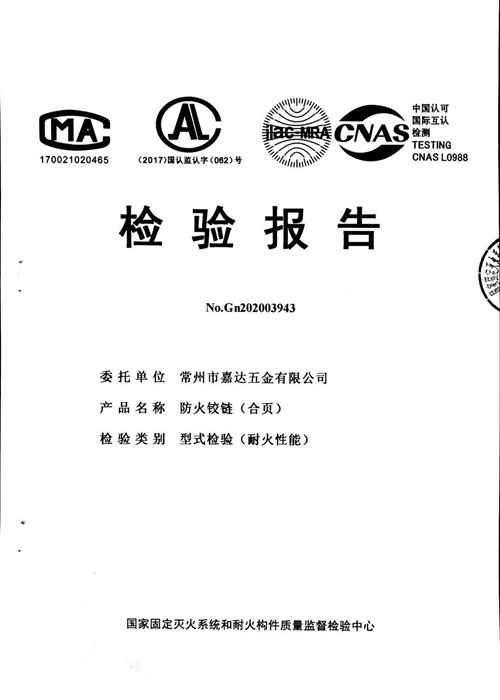 常州市嘉達(dá)五金有限公司是專(zhuān)業(yè)生產(chǎn)不銹鋼防火、防盜合頁(yè)、銅手拉門(mén)、銅門(mén)鉸鏈、銅花和各種不銹鋼暗插銷(xiāo)的企業(yè).最近又成功開(kāi)發(fā)承重鉸鏈以及調(diào)節(jié)門(mén)縫可調(diào)式鉸鏈.同時(shí)引進(jìn)澳大利亞技術(shù)開(kāi)發(fā)各種鋁合金透氣百頁(yè)窗,遠(yuǎn)銷(xiāo)歐美市場(chǎng). 我司占地面積25000平方米,建筑面積12000平方米;固定資產(chǎn)1200萬(wàn)元,公司設(shè)備齊全,設(shè)計(jì)獨(dú)特,檢測(cè)一流,產(chǎn)品適用于高級(jí)防火門(mén)以及現(xiàn)代高層居室、艦船門(mén)的配套,也適應(yīng)于一般居民.產(chǎn)品經(jīng)"天津國(guó)家固定滅火系列和耐火構(gòu)件質(zhì)量監(jiān)督檢驗(yàn)中心"檢驗(yàn)合格. 公司重視產(chǎn)品質(zhì)量,重視產(chǎn)品開(kāi)發(fā)創(chuàng)新.目前已建立完整的質(zhì)量管理體系:通過(guò)ISO9001:2000質(zhì)量認(rèn)證體系和中國(guó)強(qiáng)制認(rèn)證3C認(rèn)證.產(chǎn)品曾獲國(guó)家知識(shí)產(chǎn)權(quán)局"中國(guó)專(zhuān)利技術(shù)博覽會(huì)"金獎(jiǎng)、獲得"企業(yè)資信等級(jí)AAA級(jí)"、"信用(合同)AAA級(jí)企業(yè)"、"中國(guó)檢驗(yàn)協(xié)會(huì)會(huì)員"、"中國(guó)電器照明協(xié)會(huì)委員"、"中國(guó)工商協(xié)會(huì)委員"、"首批國(guó)家質(zhì)量服務(wù)信得過(guò)單位"、"常州市文明單位"及"武進(jìn)區(qū)文明單位"的稱(chēng)號(hào). 公司的經(jīng)營(yíng)宗旨是"以顧客為中心、以質(zhì)量為市場(chǎng)、以創(chuàng)新求發(fā)展、以管理求效益". 公司將一如既往,以一流的產(chǎn)品質(zhì)量,誠(chéng)心周到的服務(wù)使顧客滿意,以更好的服務(wù)于客戶.