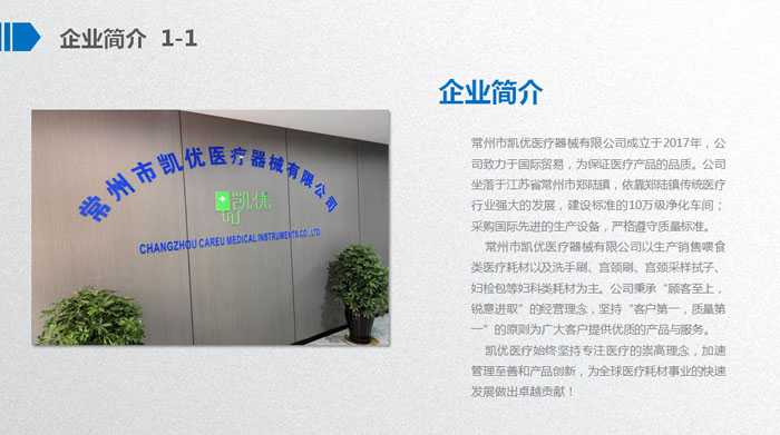 常州市凱優(yōu)醫(yī)療器械有限公司成立于2017年,是一家專注于研究、開發(fā)、生產(chǎn)及銷售喂食類醫(yī)療耗材、醫(yī)用泌尿類耗材、婦科類檢查器械、口罩等產(chǎn)品于一體的現(xiàn)代化企業(yè)。公司坐落于常州市天寧區(qū)鄭陸鎮(zhèn)一天寧高新區(qū)。我們的產(chǎn)品先后通過FDA、CE、ISO等認(rèn)證。 公司成立至今,始終秉承“顧客至上,銳意進(jìn)取”的經(jīng)營理念,先后獲得守合同重信用企業(yè)、國家質(zhì)量服務(wù)信譽(yù)AAA級企業(yè)等榮譽(yù)。我們擁有經(jīng)驗(yàn)豐富的銷售團(tuán)隊(duì)、各類專業(yè)的技術(shù)人才、熟練操作的員工以及數(shù)臺國內(nèi)外先進(jìn)的設(shè)備,敦力于為客戶提供最優(yōu)質(zhì)的服務(wù)和支持。我們以先進(jìn)的技術(shù)和科學(xué)的管理為依托,堅(jiān)持實(shí)施品牌戰(zhàn)略,在競爭激烈的醫(yī)療器械行業(yè)內(nèi),我們注重追求自主設(shè)計研發(fā),己累計推出自主研發(fā)專利十五余項(xiàng)。公司成立短短幾年的時間已經(jīng)實(shí)現(xiàn)了跨越式發(fā)展,產(chǎn)品遠(yuǎn)銷東南亞、東歐、北美等地區(qū),贏得,國內(nèi)外客戶的一致贊譽(yù)。 長風(fēng)破浪會有時,直掛云帆濟(jì)滄海。凱優(yōu)醫(yī)療如同翱翔的雄鷹,迎著希望,展翅飛翔。面對新的機(jī)遇與挑戰(zhàn),凱優(yōu)人定會憑借工匠精神,持續(xù)改進(jìn)、不斷創(chuàng)新,為企業(yè)在激烈的市場競爭中以質(zhì)取勝,確保行業(yè)領(lǐng)先地位,最終實(shí)現(xiàn),成為醫(yī)療耗材行業(yè)引領(lǐng)者的企業(yè)愿景。 凱優(yōu)醫(yī)療,因?yàn)閷W⑺宰吭健?/FONT>