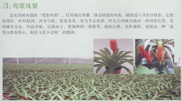 公司2008年6月成立以來,致力于發(fā)展現(xiàn)代高效設(shè)施農(nóng)業(yè)。新建的產(chǎn)業(yè)園區(qū)位于常州市武進區(qū)前黃鎮(zhèn)祝莊村,占地面積142畝。園區(qū)緊鄰太湖西太湖運河、沿江高速和錫宜高速公路,交通便捷、風(fēng)景秀麗。 為打造常武地區(qū)現(xiàn)代農(nóng)業(yè)產(chǎn)業(yè)園區(qū)新亮點,公司規(guī)劃分三期實施園區(qū)建設(shè),總投資6000萬元,集聚土地、資金、科技、人才等各種要素,三年內(nèi)建成具有現(xiàn)代經(jīng)營形式,產(chǎn)業(yè)特色鮮明,科技水平領(lǐng)先,物質(zhì)裝備先進,運行機制科學(xué)、經(jīng)濟、社會、生態(tài)綜合效益顯著的符合現(xiàn)代農(nóng)業(yè)發(fā)展方向的祝莊園藝產(chǎn)業(yè)園區(qū)。公司采取“公司+基地+農(nóng)戶”的運作模式,實行“產(chǎn)、加、銷”一條龍的產(chǎn)業(yè)經(jīng)營,確保當?shù)剞r(nóng)民增收。 公司立足高起點、高層次、全自動、強功能、高效益,全部引進西班牙智能型鋼架溫室大棚。園區(qū)一期工程已于2008年完成,建成了智能型溫室大棚1.5萬平方米,年內(nèi)可產(chǎn)高檔觀賞花卉20萬盆(株),公司堅持發(fā)展訂單農(nóng)業(yè)和品牌農(nóng)業(yè),已注冊“新卓”牌商標。園區(qū)二、三期工程在兩年內(nèi)完成。屆時。園區(qū)將建成國內(nèi)外設(shè)施先進的智能型鋼架溫室大棚和玻璃房溫室60000平方米,可望實現(xiàn)年生產(chǎn)高檔花卉80萬盆(支),銷售收入3000萬元。 公司自創(chuàng)建以來,得到了部、省、市、區(qū)各級黨政領(lǐng)導(dǎo)及專家的高度關(guān)心、重視和支持。目前為止,農(nóng)業(yè)部副部長張兆林、江蘇省副省長黃莉新、省農(nóng)林廳廳長吳沛良以及市、區(qū)黨政領(lǐng)導(dǎo)沈瑞卿、張耀鋼、顧偉國等同志親臨現(xiàn)場指導(dǎo),并給予高度評價。公司園區(qū)生產(chǎn)鳳梨、國蘭等高檔觀賞花卉的系列品種:紅星、丹尼斯、鶯歌、丹尼斯、火炬等,均屬名貴高雅品種。 公司還將引進中、高級科技人才,開展國內(nèi)外名貴花卉的組培工作,以研究開發(fā)高檔花卉新品,帶動花卉業(yè)發(fā)展,滿足市場需求。公司將堅持以花會友,誠信交友,竭誠歡迎各級領(lǐng)導(dǎo)、各類專家及廣大客戶前來指導(dǎo)交流、洽談合作。