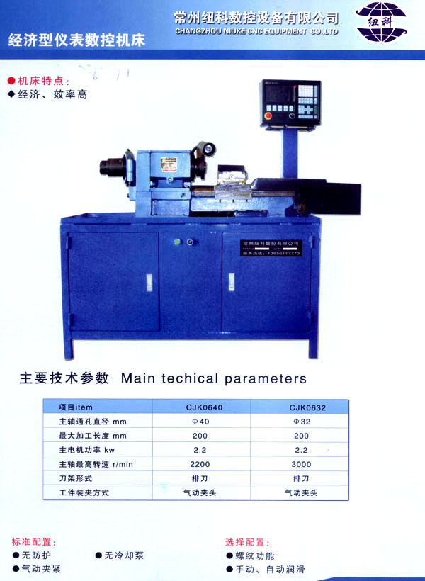 常州紐科數(shù)控設備有限公司位于中國蘇南工業(yè)明星城市——常州!我公司地處常州市東門橫山橋鎮(zhèn),地理位置十分優(yōu)越,緊臨312國道和滬寧高速橫山橋出口。 我公司專業(yè)生產(chǎn)各類數(shù)控機床及各類普通機床的數(shù)控改造業(yè)務,公司自成立以來,緊緊圍繞質(zhì)量,誠信,服務,求市場經(jīng)營理念,產(chǎn)品行銷全國,誠信和質(zhì)量都博得用戶一致好評。 我公司目前主要產(chǎn)品有:C~CJK61 80。C~CJK61 63,CK/C,.IK61 50,CK/C。IK61 40,C~CJK61 32,CK/CJK6432,C~CJK0640,C~CJK0632及CK一32/40斜導軌數(shù)控機床,公司產(chǎn)品不僅可以滿足各企業(yè)產(chǎn)品的批量加工,更是高等院校,中專,技校,職校相關(guān)專業(yè)數(shù)控技術(shù)實習教學和綜合實驗的理想設備。 我公司有著雄厚的技術(shù)力量和制造能力,在數(shù)控機床開發(fā)制造領域。公司擁有一批長期從事相關(guān)專業(yè)的高水平工程技術(shù)人員。以創(chuàng)新并富有競爭力的產(chǎn)品和專業(yè)服務拓展機床設備市場和機械加工市場。質(zhì)量第一,誠信經(jīng)營,用戶至上,售后最快是常州紐科數(shù)控設備有限公司經(jīng)營宗旨。客戶的需求永遠是我們追求目標,常州紐科數(shù)控設備有限公司愿和廣大國內(nèi)外客戶攜手并進,共創(chuàng)偉業(yè)。