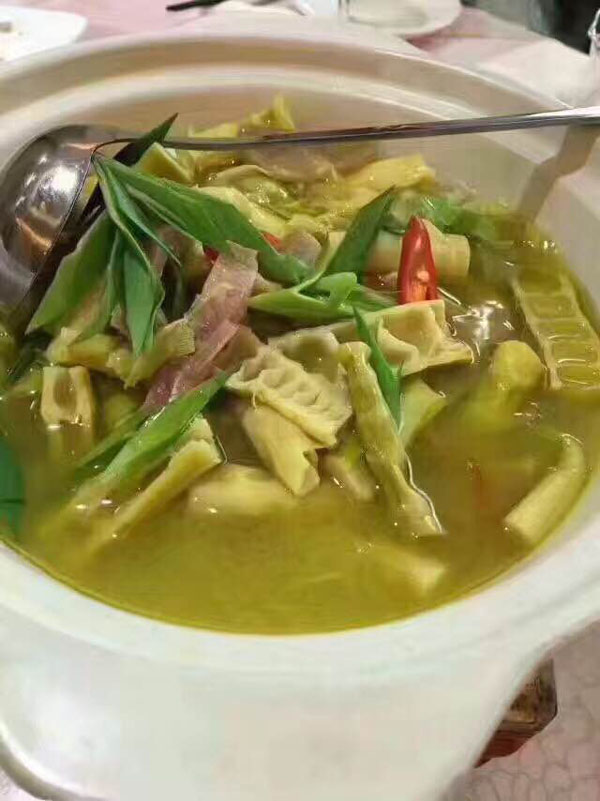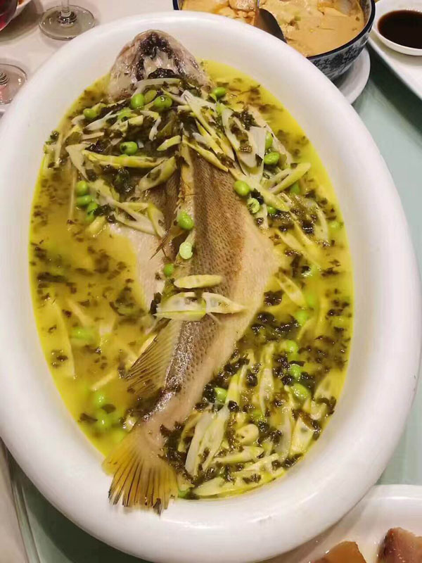 橫林有個地兒叫楊歧村,有句老話叫“上不靠橫林,下不靠洛社”,說的就是那里。 楊歧村過去幾十米就是無錫地界,今天小編推薦的土菜館「三妹農家小吃」就在那里。 當小編一路七拐八拐,中午11點半到達那里時,門面雖然很簡陋,但店門口已然停了好多輛車。剛進入店門,就發(fā)現(xiàn)這家店人氣好旺,十幾桌基本都坐滿了。(所以說,人不可貌相,餐館也是如此) "三妹,三妹。⒌昀锟腿私袉韭暡唤^于耳,原來老板娘叫楊三妹啊。你們忙,我們先隨便看看。 過大廳到后堂就是冷菜間,里面有白切草雞、鹵豬干、拌馬蘭等十幾種土菜,尤其那草雞濃郁的香味,讓小編肚子叫得咕咕響。 往前是活貨區(qū),各種鮮魚活蝦一格一格區(qū)分養(yǎng)著,再里面是開放式廚房,每個客人都可以看到,選用的放心食材和調料。  吃貨老板娘,楊三妹,三妹,從小到大一直有個嗜好,就是愛美味,不光喜歡吃,還喜歡鉆研做。2010年,「三妹小吃」開張,因為獨具特色,在楊歧這個小村一炮而紅。要說楊三妹最拿手的菜是什么,當然是酒糟扣肉。 糟本來就是一種做米酒留下來后,用來吊燒酒的。但是我們常州人很聰明,把糟和肉放在一起,做成一道美味菜,叫酒糟扣肉。 楊三妹的酒糟扣肉之所以有名,得益于母親的悉心傳授。記憶里小辰光,她母親做的扣肉總比別人家的香!冈恪,釀完酒后留下的糟,會與炒熟的新糯米,拌和在一起,陳一年!溉狻梗x擇本地養(yǎng)殖的良種豬,沒有臊味。 長大后,她把記憶里的美味延續(xù)了下來。精益求精的她,對扣肉的制作過程要求很嚴格。別人家制作都是把肉直接切大塊,排碗,熬槽,蒸爛。三妹說,這樣烹制,肉汁的鮮美會流失很多,口感減分不少。她的做法是精選新鮮豬五花,整大塊清蒸,保留肉汁的鮮美,之后再切塊紅燒,排碗,熬糟,澆蓋,再蒸。 三妹酒糟扣肉,出鍋后,色澤紅潤,味道鮮美。既有酒的香味,又有肉的鮮美,而且經(jīng)過蒸煮后,油脂都出來了,爽口不油膩。