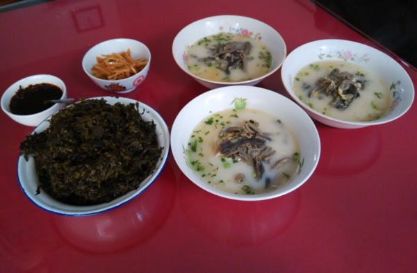 歡迎來孟河老街的八斤面館吃孟河鱔絲面! 這孟河鱔絲面據(jù)說是康熙年間傳下來的,算起來已有三百多年的歷史了,要比常州小籠饅頭、大麻糕一百多年歷史悠久得多。在孟河一帶,做孟河鱔絲面的面館有許多家,就像常州做小籠饅頭、大麻糕的店家一樣的多。 “八斤面館”的孟河鱔絲面是有傳承的,是孟河兩家比較正宗的孟河鱔絲面館之一。孟河鱔絲面制作技藝曾列入新北區(qū)非物質(zhì)文化遺產(chǎn)調(diào)查,調(diào)查時(shí)“八斤面館”的老板巢八斤也提供了有關(guān)資料。 這家小面館取名為“八斤面館”,是因?yàn)槔习逍∶徒邪私。走進(jìn)這片小小的面館,只有兩張八仙桌。只有臺子上的玻璃臺刻還有點(diǎn)七十年代的特征,其它地方還都是五、六十年代鄉(xiāng)下家里頭的風(fēng)格。 老板巢八斤祖上三輩都是廚師,現(xiàn)在兒子也在上海做廚師。老板娘原來是上海知青,上山下鄉(xiāng)時(shí)投親靠友來到孟河,后來在孟河與巢八斤結(jié)婚,成家立業(yè)。與在支青大返城時(shí)放棄回大上海的機(jī)會(huì),與老公開了這個(gè)“八斤面館”,用老板娘的話說是"做做白相相的",所以守著這片小店,只想把鱔絲面做好。也不想做大,也不想到常州到上海去開大一點(diǎn)的面館。 這孟河鱔絲面是用一斤有十幾條的“筆梗黃鱔”,先用開水把黃鱔燙熟,然后用竹刀批下二條黃鱔肉,除去骨頭肚腸,切成段后入油鍋里炸酥,再用白湯烹制成為面澆頭。而面湯是用鱔魚骨頭、豬骨等用大鍋猛火煮上三、四個(gè)鐘頭,成為一鍋濃濃的白湯,再進(jìn)行調(diào)味。面條也是用細(xì)細(xì)的銀絲面,大碗寬湯,鮮香味濃,沒有一丁點(diǎn)鱔魚的土腥氣,再加上白胡椒粉,吃到嘴里全身舒坦。