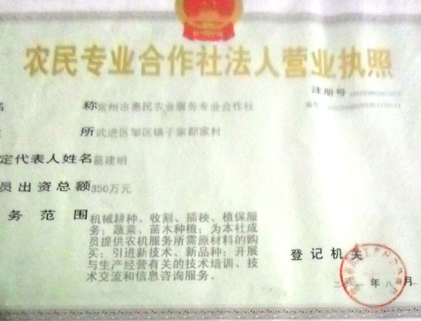 常州市惠民農(nóng)業(yè)服務專業(yè)合作社主要從事機械耕種、收割、插秧、植保服務;蔬菜、苗木種植;為本社成員提供農(nóng)機服務所需原材料的購買;引進新技術(shù)、新品種;開展與生產(chǎn)經(jīng)營有關的技術(shù)培訓、技術(shù)交流和信息咨詢服務。