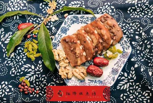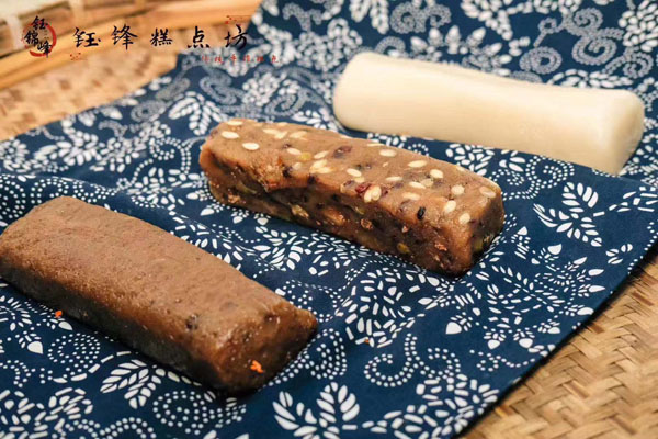 腳踏糕本名“年糕”,按常州周邊地區(qū)的風(fēng)俗習(xí)慣,在春季前夕,各家各戶都要蒸年糕,吃年糕。“糕”諧音“高”,過年吃年糕被賜予“年年高”,一年高一年,鋒吉祥之意,表達(dá)這人們對未來美好生活的憧憬和良好的祝愿。今天小編要帶大家的就是一家至今保持著傳統(tǒng)手工制作的鈺鋒糕點(diǎn)坊。   鈺鋒糕點(diǎn)坊位于常州鄭陸鎮(zhèn)三皇廟范家莊,一個比較偏僻的村莊,雖然這家作坊不大,但香糯絲滑,軟糯適中,韌勁十足的腳踏糕吸引了無數(shù)的食客。制作一條腳踏糕要從淘米,浸泡,碾粉,鋪粉,一層一層的鋪下去,需要無數(shù)道制作工序,這些都是店主孫煥公公老周,憑著幾十年的經(jīng)驗(yàn),加上店主孫煥從不馬虎的決心!   這“腳踏”也并非赤腳上陣,而是把蒸好的糕倒入早以準(zhǔn)備好的框子里,用布包裹好,上面再用薄膜包好,再蓋上布,再換上專門腳踏的布鞋,踩的時候要勻稱,左右腳要配合好,不然糕會高高低低,不平整,最后再拿蠟燭線拆成一條小長條,再拿帶包裝好,如此又香又糯的腳踏糕就大功告成了。   店主孫煥為了讓更多的人認(rèn)識和了解常州腳踏糕的傳統(tǒng)文化和美食,她在傳統(tǒng)工藝中增加了適合現(xiàn)代文化的多種口味,她在糕里加入南瓜,紫薯,老紅糖,大麥汁,血糯米,核桃,葡萄干,紅棗等食材,做出五顏六色,純天然的口味,深受食客們的喜愛,不管是送人還是自己吃都非常新穎。