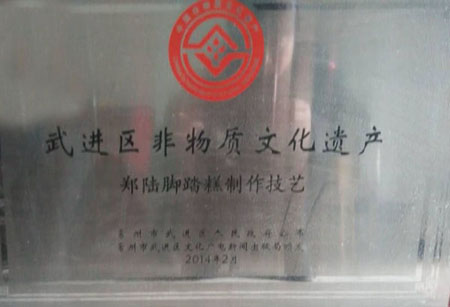 常州鄭陸何金興腳踏糕制作坊從事腳踏糕制作工藝200多年,五代傳承,制作面積300平方米左右,腳踏糕是用黏性大的米或米粉蒸成的糕,是中國農(nóng)歷年的應(yīng)時食品。春節(jié),我國很多地區(qū)都有講究吃年糕。年糕有紅、黃、白三色,象征金銀,年糕又稱“年年糕”,與“年年高”諧音,寓意著人們的工作和生活一年比一年提高。所以前人有詩稱年糕:“年糕寓意稍云深,白色如銀黃色如金。年歲盼高時時利,虔誠默祝望財臨!绷碛姓憬幉ㄊ薪眳^(qū)慈城鎮(zhèn)的水磨年糕也是特別有名。