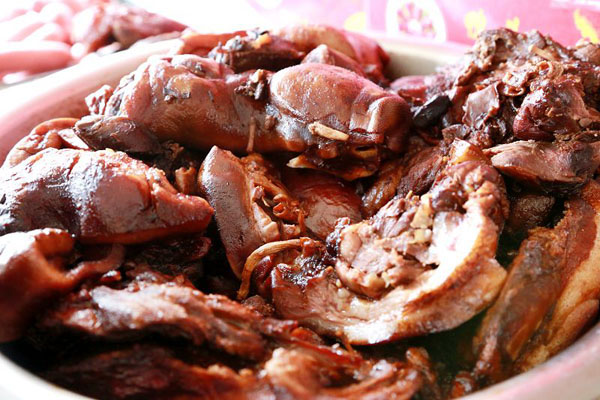 武進(jìn)區(qū)嘉澤老街十字路口,有一家不起眼的鹵菜專賣店,店面雖然不大,但一年365天每天來(lái)購(gòu)買鹵菜的消費(fèi)者卻絡(luò)繹不絕。 這家鹵菜店名叫鎖林鹵菜店,店主名叫萬(wàn)鎖林。 今年已花甲之年的萬(wàn)鎖林,出生在武進(jìn)區(qū)的一個(gè)鹵菜世家。解放前,正逢亂世,1927年其父萬(wàn)友良17歲隨父從蘇北海安至夏溪鎮(zhèn)落戶,全家以經(jīng)營(yíng)小吃、鹵菜為生。1956年萬(wàn)友良經(jīng)營(yíng)的鹵菜小吃店公私合營(yíng),起名為東方飯店(后改名為夏溪飯店),萬(wàn)友良帶領(lǐng)其七個(gè)兒子全部從事餐飲事業(yè)。1972年,排行第六的萬(wàn)鎖林初中畢業(yè)被分配到嘉澤飯店工作,直至1982年夫妻倆著手創(chuàng)辦鎖林鹵菜館,專業(yè)從事鹵菜的加工和銷售。 鎖林鹵菜采用祖?zhèn)髋浞,制作工藝?jīng)清洗—汆水—再清洗—油汆—加料—燒制—包裝等多道工序。萬(wàn)鎖林在祖?zhèn)髅胤降幕A(chǔ)上,不斷探索創(chuàng)新,使鹵菜口味更加香醇可口。他還在菜肴中加入茴香、陳皮、桂皮等20多種中草藥,使產(chǎn)品兼具食用保健作用。 由于鎖林鹵菜色、香、味俱佳,而且價(jià)格合理,遠(yuǎn)近數(shù)十里群眾紛紛前來(lái)選購(gòu)目前,該店已形成鴨頭、雞爪、豬頭肉、五香牛肉等四大系列,產(chǎn)品遠(yuǎn)銷北京、上海、浙江、海南及蘇、錫、常各地,深受各地消費(fèi)者青睞。 購(gòu)買地址: 一、嘉澤鎮(zhèn)菜市場(chǎng)內(nèi) 二、嘉澤鎮(zhèn)老街十字路口 電話:0519-83802086 訂購(gòu)熱線:18915002160