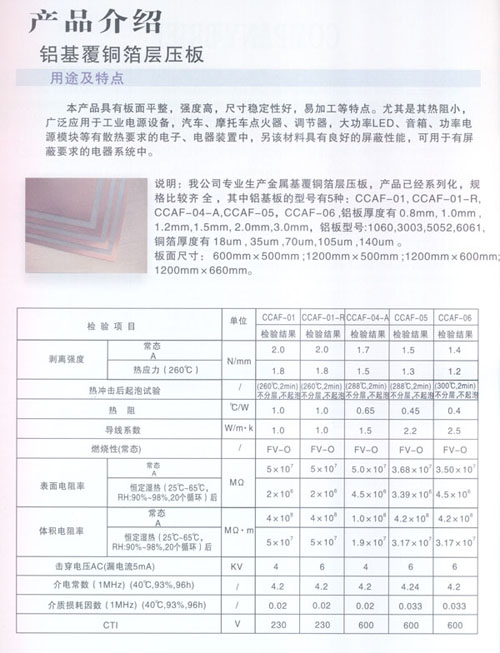本公司是一家專業(yè)從事研發(fā)、生產(chǎn)金屬基(鋁基、鐵基、銅基)覆銅箔層壓板的民營(yíng)科技企業(yè)。公司位于江蘇省常州市新北區(qū)春江鎮(zhèn),京滬高速鐵路火車站落戶本地區(qū),相距8Km,滬寧高速公路出口相距8Km,常州民航機(jī)場(chǎng)相距18Km,交通便捷,環(huán)境優(yōu)美。 公司占地面積18000㎡,廠房面積38000㎡,員工300多人,金屬基覆銅板和金屬基印制板的年產(chǎn)能分別為800,000㎡和380,000㎡。公司技術(shù)力量雄厚,其中高級(jí)工程師20名,技術(shù)人員50名,并與本地大學(xué)掛鉤。公司擁有全套的金屬基覆銅箔層壓板檢驗(yàn)設(shè)備。自主開發(fā)的產(chǎn)品并獲得國(guó)家實(shí)用新型專利,專利號(hào):ZL200620165311.4、ZL200820185660.1、ZL200920035286.1、ZL200920255499.5、ZL200920284561.3。 以及多項(xiàng)發(fā)明專利,專利號(hào):ZL 200910026210.7、申請(qǐng)?zhí)枺?00910234775.4。自主開發(fā)的散熱器基覆銅箔印制電路板層壓板,已申請(qǐng)發(fā)明專利,申請(qǐng)?zhí)枺?00910184663.2。 金屬基覆銅箔層壓板的特點(diǎn)就是高散熱,低熱阻,散熱效果特別好! 公司生產(chǎn)的CCAF-01型鋁基覆銅箔層壓板,熱阻為1.0℃/W,熱導(dǎo)率為1.0W/m·K;CCAF-04-A型鋁基覆銅箔層壓板,熱阻為0.65℃/W,熱導(dǎo)率為1.3~1.5W/m·K;CCAF-05型鋁基覆銅箔層壓板,熱阻為0.45℃/W,熱導(dǎo)率為2.0~2.2W/m·K,CCAF-06型鋁基覆銅箔層壓板,熱阻為:0.4℃/W,熱導(dǎo)率為2.5~2.8W/m·K。接近國(guó)際先進(jìn)水平,自主開發(fā)的散熱器基覆銅箔印制電路板層壓板,填補(bǔ)國(guó)內(nèi)空白。公司生產(chǎn)的鋁基覆銅箔板廣泛應(yīng)用于汽車點(diǎn)火器、摩托車調(diào)壓器、音箱模塊電源、通訊模塊電源、變頻模塊電源;各種大功率LED工程景觀照明:洗墻燈、投光燈、草坪燈、水底燈、噴泉燈、路燈、室內(nèi)照明、長(zhǎng)1.2米LED照明燈、手電筒及液晶顯示器等。 鐵基覆銅箔板廣泛用于微型電機(jī)和馬達(dá)驅(qū)動(dòng)器等。 銅基覆銅箔板應(yīng)用于太陽(yáng)能電站和軍工產(chǎn)品。 公司產(chǎn)品在深得國(guó)內(nèi)多數(shù)知名企業(yè)(海爾,海信,京東方等)認(rèn)可選用的同時(shí)還遠(yuǎn)銷海外,美國(guó)、德國(guó)、土耳其、芬蘭、意大利、法國(guó)、菲律賓、印度、馬來(lái)西亞、新加坡、日本、韓國(guó)及中國(guó)的港臺(tái)地區(qū)等。 公司產(chǎn)品已獲得UL全性能認(rèn)證,檔案號(hào):覆銅板E250901,印制板E348435;CQC安全認(rèn)證和ISO9001:2008質(zhì)量管理體系認(rèn)證,ISO14001:2004環(huán)境管理體系認(rèn)證。 客戶的需要是我們不懈的追求,公司將以先進(jìn)的技術(shù),科學(xué)的管理,良好的質(zhì)量,優(yōu)惠的價(jià)格為新老客戶提供精良的服務(wù)!