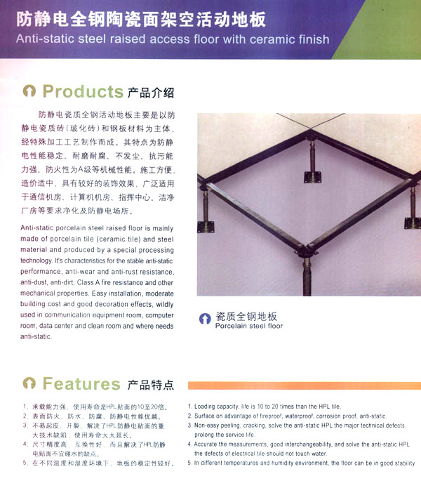常州天馳活動地板有限公司始創(chuàng)于2010年,原身是常州市武進(jìn)區(qū)橫林天馳機房地板廠,地處橫林工業(yè)園區(qū),交通便捷。 公司主要生產(chǎn)和銷售各種機房地板,自創(chuàng)立以來,以品質(zhì)第一,信譽第一,服務(wù)第一的理念堅持做全國最優(yōu)質(zhì)量。 防靜電高架活動地板是計算機行業(yè)發(fā)展起來的新型鋪地材料,隔離了潮氣,靜電灰塵。最重要的是解決了綜合布線問題,無需預(yù)埋管線,可隨時拆卸,搬移,保證了資訊設(shè)備完整的優(yōu)點,適應(yīng)了智能化樓宇中信息自動化技術(shù)對所處環(huán)境的特定要求,避免了廣大客戶的雙重投資,使現(xiàn)代化辦公程度更加高效,辦公場所更加舒適。 公司專業(yè)生產(chǎn)“天馳”系列活動地板,符合國家安全要求,種類完備多樣,其中防靜電瓷質(zhì)高架通路地板除具有普通瓷質(zhì)的裝飾和實用性外,其耐磨,防水,防火功能優(yōu)于其他同類產(chǎn)品,深受客戶歡迎。 公司大力發(fā)展國內(nèi)外銷售業(yè)務(wù),多次中標(biāo)國內(nèi)重點裝飾工程,例:湖南電視臺,寧波縣變電站,鞍山市120急救指揮中心等。 公司將一如既往開發(fā)和制造一流的產(chǎn)品,愿與廣大有識之士合作發(fā)展,共創(chuàng)美好未來!