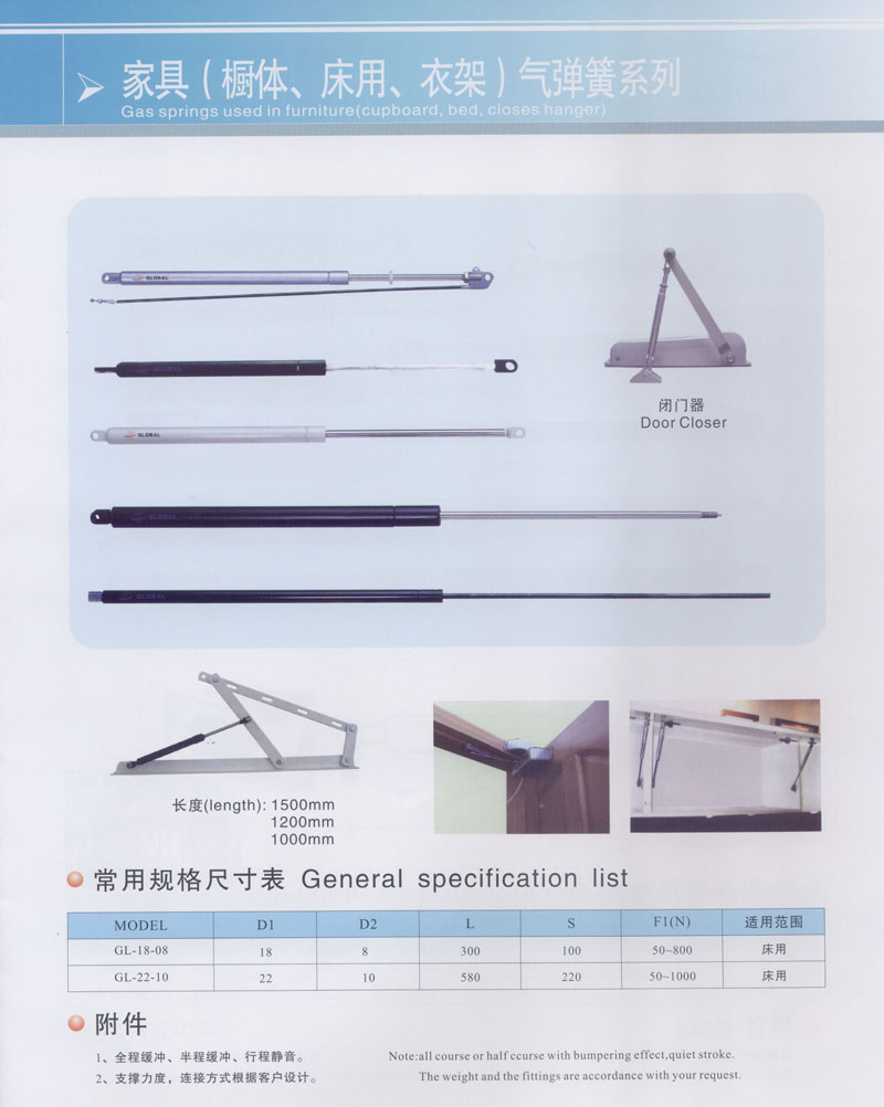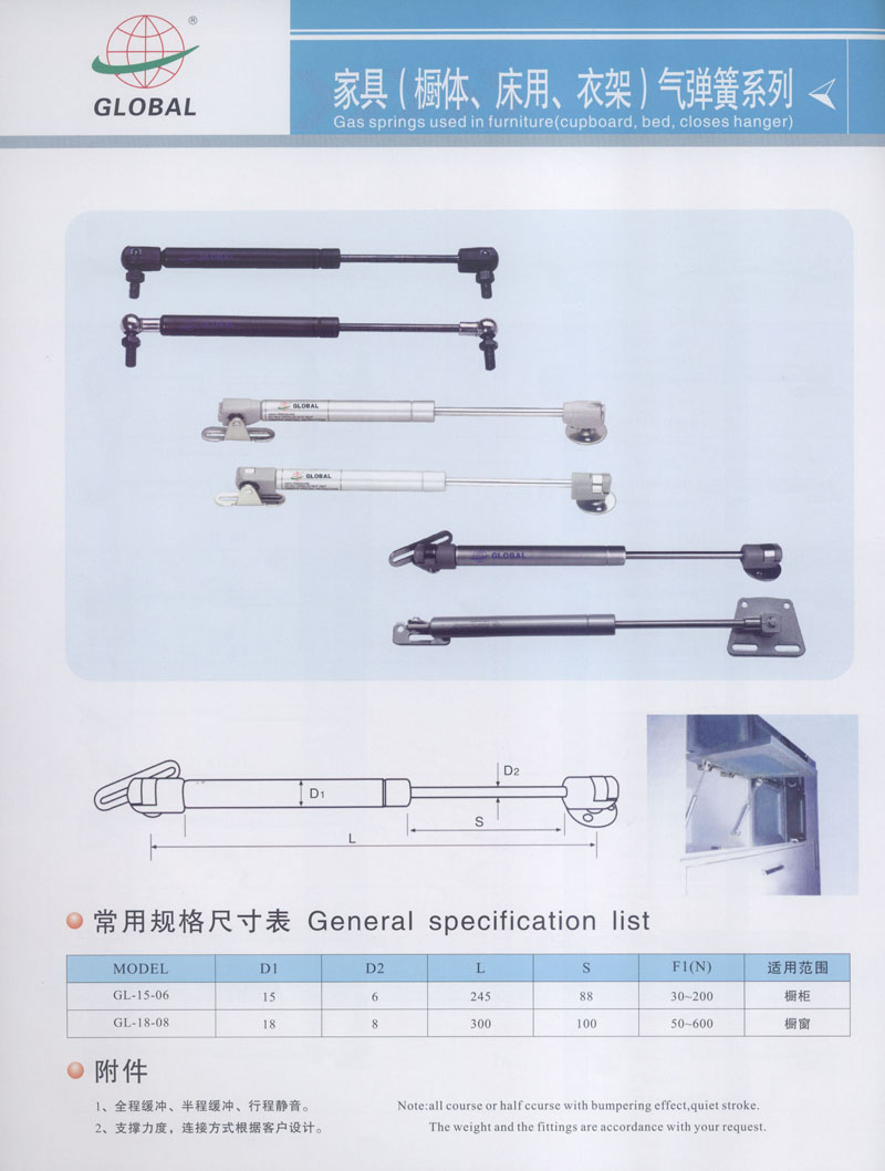 常州市全球氣彈簧有限公司坐落于高新開(kāi)發(fā)區(qū)南區(qū),占地12800平方米,是專(zhuān)業(yè)生產(chǎn)用于家具,汽車(chē),醫(yī)療設(shè)施以及工業(yè)等各類(lèi)氣彈簧的廠家。公司擁有專(zhuān)業(yè)的技術(shù)人員和先進(jìn)的設(shè)備,產(chǎn)品大部分出口到國(guó)外,產(chǎn)品的質(zhì)量和性能得到內(nèi)外客戶(hù)的認(rèn)可和歡迎。 公司還配備了專(zhuān)門(mén)研究和開(kāi)發(fā)新產(chǎn)品的技術(shù)人員以滿(mǎn)足不同客戶(hù)的需求。 您的關(guān)注和支持是我們不斷創(chuàng)新和發(fā)展的動(dòng)力,更好的質(zhì)量和服務(wù)是我們的工作理念,我們將竭誠(chéng)為您服務(wù)。