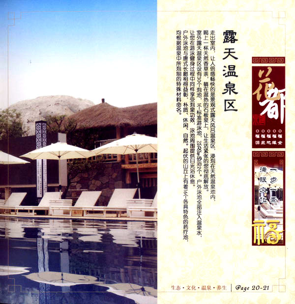 花都溫泉水城包括洗浴區(qū)、戲水世界、露天溫泉、自助餐廳、生態(tài)房、別墅區(qū)、紅文化房、VIP區(qū)等多種功能區(qū)域,是集溫泉養(yǎng)生、休閑住宿、演藝會務(wù)為—體的休閑度假勝地,給賓客帶來江南小鎮(zhèn)的浪漫水城之旅。