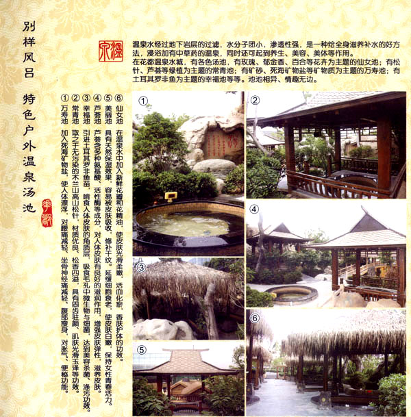 淹城花都溫泉水城孕育天地之精華,悅身、悅?cè)、悅心、悅神。置身其中泉水潺潺,霧氣繚繞、花瓣飄香,恍若仙境。“掬水月在手,弄花香滿衣”,花都溫泉的浪漫與溫潤在這里完美展現(xiàn)。 花都溫泉水城包括洗浴區(qū)、戲水世界、露天溫泉、自助餐廳、生態(tài)房、別墅區(qū)、紅文化房、VIP區(qū)等多種功能區(qū)域,是集溫泉養(yǎng)生、休閑住宿、演藝會務(wù)為—體的休閑度假勝地,給賓客帶來江南小鎮(zhèn)的浪漫水城之旅。 古木新枝畔賓客對酒當(dāng)歌,溪泉石椅旁把茶品啜。 淹城-三勤生態(tài)酒店,這里是一處綠色生態(tài)的美食家園。此地鬼斧神工.奇水異石,和風(fēng)細(xì)雨林中穿過,引百鳥朝來暮歌;這里集生態(tài)餐飲、演藝、中小型會務(wù)為一體,將現(xiàn)代裝飾風(fēng)格和古雅拙樸的自然裝修完美整合;這里聚集大江南北名廚,推出精致綠色美昧佳肴。來到這里,賓客可享田園至美之景,品舌尖至鮮之味,實(shí)乃人生一大樂事。