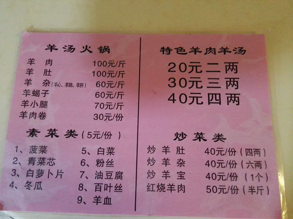 天寧區(qū)紅梅奧彩小吃店(紅梅羊湯店)成立十四年,特色是羊湯, 羊肉是中國人民食用的主要肉類之一.羊肉比其他肉類的肉質(zhì)要細(xì)嫩,而且膽固醇含星低。相對(duì)其他肉類而言,羊肉蛋白質(zhì)含量較多,脂肪含量較少。維生素B1、B2、B6以及鐵、鋅、硒的含量頗為豐富。此外,羊肉肉質(zhì)細(xì)嫩容易消化吸收.多吃羊肉有助于提高身體免疫力。 羊肉熱量比牛肉要高.中醫(yī)認(rèn)為,羊肉具有補(bǔ)精血,益虛勞.溫中健脾,補(bǔ)腎壯陽,養(yǎng)薛等功能,尤其適合老年人、體虛的人群食用。 羊肉的大部分脂肪都可看得見,很容易去除。羊腿部肉、肋骨和腰部肉比肩胛肉瘦。每100克烤羊腿中.含蛋白質(zhì)28克、脂肪7克、膽固醇100毫克.能提供的熱量是757.7千焦。 羊羔肉富含蛋白質(zhì)、鋅和維生素B族,其中煙酸、維生素B2和維生素B12的含量壟基圭富.羊羔肉中鎂、鉀和磷的含量也較高,并易于吸收。