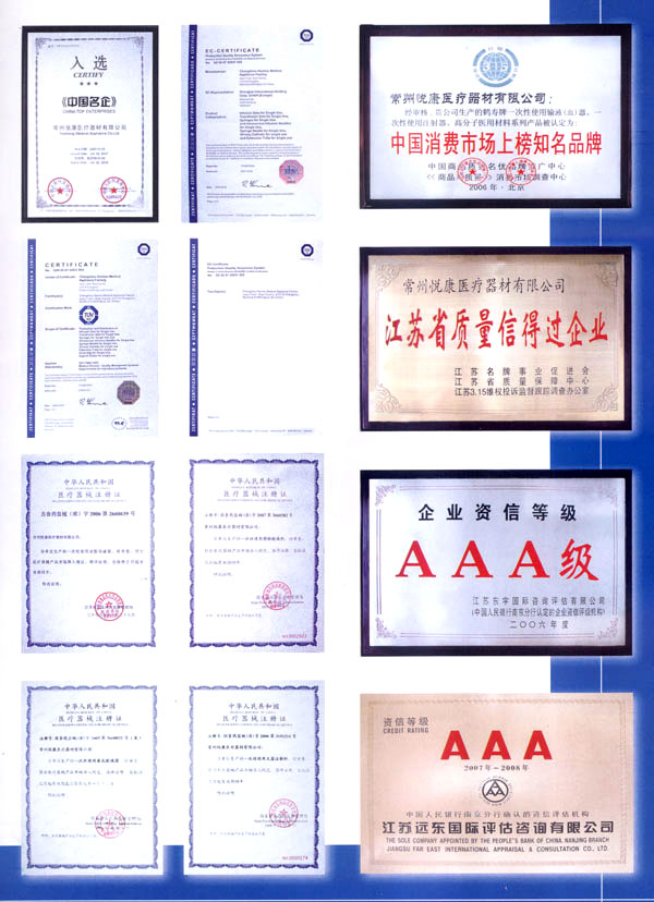 常州悅康醫(yī)療器材有限公司(原常州市鶴壽醫(yī)用器材廠) 是專業(yè)生產(chǎn)一次性使用無菌醫(yī)療器械的股份制企業(yè)。本公司始建于1986年,現(xiàn)公司面積32000平方米,建筑面積為18500平方米。其中十萬級潔凈區(qū)面積為7500平方米,目前擁有固定資產(chǎn)3000余萬元,現(xiàn)有員工380人,主要生產(chǎn)一次性使用輸液(血)器、一次性使用注射器、一次性使用靜脈針、一次性使用注射針及一次性使用高分子醫(yī)療制品,年生產(chǎn)能力超2億套,產(chǎn)品銷售歷年處于供不應(yīng)求的好勢頭,銷售覆蓋全國28個(gè)省市、市、自治區(qū)1000多家醫(yī)療單位,受到用戶好評,成為江蘇省生產(chǎn)一次性醫(yī)療用品的重點(diǎn)企業(yè)。 本公司具有自營進(jìn)出口經(jīng)營權(quán),通過ISO9002質(zhì)量管理體系和CE認(rèn)證。我廠將以優(yōu)異的質(zhì)量、合理的價(jià)格、及時(shí)供貨為各單位提供良好的服務(wù)和方便。