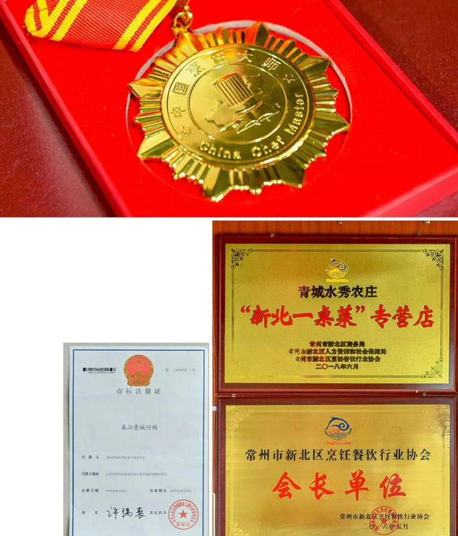 常州青城水秀農(nóng)業(yè)專業(yè)合作社成立于2013年11月21日,注冊資金200萬。位于常泰高速孟河收費站旁,離338省道l公里之遠,交通十分便捷。 本合作社共占地面積120多畝,其中生態(tài)漁業(yè)垂釣水面50畝,綠色生態(tài)禽類養(yǎng)殖區(qū)10畝;林木花卉苗木基地區(qū)面積達到50畝。融合生態(tài)農(nóng)業(yè)、都市農(nóng)業(yè)、莊園農(nóng)業(yè)、園林園藝于一體,著力建設觀光休閑的新型城郊都市農(nóng)業(yè)示范基地,F(xiàn)有常年在職員10人。營業(yè)至今5年,現(xiàn)有大小包廂12個,農(nóng)莊接待能力為25桌。本農(nóng)莊主營特色家常菜有“青城仔鵝”、“長江鰻魚”、“紅燒青魚尾巴”,“鵝湯煲豆腐”,還有農(nóng)家傳統(tǒng)自制的特色小吃“農(nóng)家八寶飯”、“燜鵝蛋”。本農(nóng)莊的服務理念足:以綠化、生態(tài)、環(huán)保餐飲為目標,傳統(tǒng)與現(xiàn)代相結(jié)合的烹飪模式。 “青城仔鵝”,青城仔鵝是魏孝地方的土特產(chǎn),更是常武地區(qū)的菜肴新秀,為了把品牌發(fā)揚光大,2015年本農(nóng)莊特申請青城仔鵝為專利。青城仔鵝雖然歷史不是很長,從上世紀九十年代初期開始至今也有20多年,成為常武地區(qū)有名的“白烏龜”之鄉(xiāng),由于“白烏龜”是天然綠色食品,活殺現(xiàn)供,田園風味,農(nóng)家特色,倍受歡迎,至今名氣遠揚。他獨特之處在于生態(tài)環(huán)境生長和生態(tài)綠色清飼料為主食喂養(yǎng),生長期不超過60-70天,采用獨特烹飪工藝,具有農(nóng)家田園特色風味。仔鵝肉鮮味美,營養(yǎng)價值極高。俗話說:“天上的鵝肉,地上的驢肉。稱鵝肉為“世界綠色食品之王”。 2018年“青城仔鵝”入選新北區(qū)評選出的“十大特色名菜”之首,法人朱全林還獲得“中國烹飪大師”稱號。幾年中,還參加由區(qū)、鎮(zhèn)舉辦的各項美食文化活動:春江江鮮莢食文化節(jié),新北區(qū)江鮮美食文化旅游節(jié)暨“中洋杯”河豚技能大賽等。