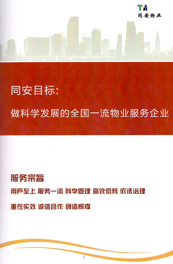 公司始終以“打造中國最值得信賴和最值得尊重的物業(yè)管理服務(wù)集成商”為愿景自我鞭策,不斷前行。同安物業(yè)以客戶滿意為終極目標(biāo),不斷加強”崗位資格認證能力,人才招聘與職業(yè)化培訓(xùn)能力,產(chǎn)品策劃與管理設(shè)計能力,品質(zhì)監(jiān)督與管控能力,技術(shù)更新與運營優(yōu)化力“五大專業(yè)能力的培養(yǎng)和提升,實現(xiàn)“精品化管理,專業(yè)化服務(wù)”。