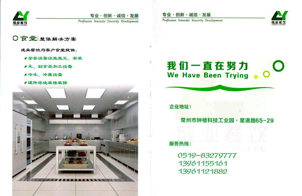 常州市成業(yè)餐飲管理有限公司位于常州市鐘樓區(qū)星港58號,是一家專業(yè)從事中小學師生營養(yǎng)餐制售及配送一體化的企業(yè),自創(chuàng)立以來,始終堅持“專業(yè)•創(chuàng)新•誠信•發(fā)展”的經(jīng)營理念,牢固樹立“消費者利益至上”的行業(yè)價值觀,以“社會利益和經(jīng)濟利益共同實現(xiàn)”為發(fā)展目標,深入推進各項創(chuàng)建工作,積極響應,工商協(xié)同、培育品牌、信息共享、完善制度、增強能力,從而更好地服務于在校就餐師生。 公司董事長陳葉東先生經(jīng)過多年的自主經(jīng)營歷程,積累經(jīng)驗,勇于創(chuàng)新,積極進取,于2009年3月籌建創(chuàng)立常州市成業(yè)餐飲管理有限公司,注冊資金518萬元整,發(fā)展至今,已經(jīng)營管理30多家中小學、企業(yè)食堂,每天為45000多人次提供優(yōu)質(zhì)放心午餐,擁有良好的經(jīng)營信譽和口碑。 為了更好的適應常州學生營養(yǎng)餐供給模式,于2015年2月投建2000平方米中心廚房,同年8月正式投入使用,以先進的恒溫配送模式滿足校內(nèi)無食堂的學校供餐需求。2018年5月,鑒于公司發(fā)展需求,重新投建350平方米團餐加工及配送中心,8月正式投入生產(chǎn),力求成為常州市一流的學生營養(yǎng)餐配送企業(yè)。 基于常州公司的穩(wěn)步發(fā)展,成業(yè)并沒有滿足現(xiàn)狀,停下腳步。2017年7月以980萬注冊創(chuàng)建鹽城成業(yè)餐飲管理有限公司,為鹽城阜寧教育體系各單位提供食堂管理及師生團膳配送服務。至2019年3月,日供餐人次已達21000多人次。 2018年7月,成業(yè)餐飲在鹽城地區(qū)相繼啟動濱海和響水兩縣的集體用餐配送及食品原料大宗采購項目,當?shù)叵嚓P(guān)政府部門對公司的發(fā)展規(guī)劃及實施進度給予了高度評價和支持。