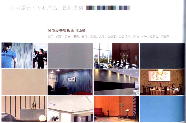 常州愛普裝飾材料有限公司位于美麗富饒的江蘇省常州市,是一家專業(yè)從事墻板設(shè)計(jì)與生產(chǎn)的企業(yè)。年生產(chǎn)墻板300萬平方米。"愛普墻板"是我公司生產(chǎn)的一種新型墻面裝飾材料,產(chǎn)品由人造金剛石耐磨層、三聚氰胺裝飾紙、EO級HDF材料、高檔防潮平衡紙,采用先進(jìn)的德國生產(chǎn)設(shè)備,通過一流的生產(chǎn)工藝--一次性熱壓技術(shù)壓貼成型。具有環(huán)保、耐磨、防刮擦、防潮、阻燃、隔音、保溫、抗沖擊、抗污等優(yōu)點(diǎn)。經(jīng)中華人民共和國專利認(rèn)定為 專利產(chǎn)品(專利號:ZL200820127448.X),為國際首創(chuàng),其知識(shí)產(chǎn)權(quán)受國家法律保護(hù)。 愛普墻板經(jīng)建科院權(quán)威部門檢測,其所有物質(zhì)性能指標(biāo)均符合國家建材行業(yè)標(biāo)準(zhǔn),產(chǎn)品遠(yuǎn)銷美國、加拿大、澳大利亞、土耳其、俄羅斯、馬來西亞等國家和地區(qū),以其優(yōu)秀的產(chǎn)品與新穎的設(shè)計(jì)贏得了廣泛贊譽(yù),經(jīng)歷五年的發(fā)展,愛普裝飾材料公司已成為墻板行業(yè)的領(lǐng)軍企業(yè)。 公司以"開拓、競爭、誠信、服務(wù)"的企業(yè)精神,"本著質(zhì)量第一、用戶第一"的原則,依托先進(jìn)的工藝裝備、雄厚的技術(shù)力量,完善的企業(yè)管理制度,竭誠為用戶提供優(yōu)質(zhì)的產(chǎn)品與良好的服務(wù)。