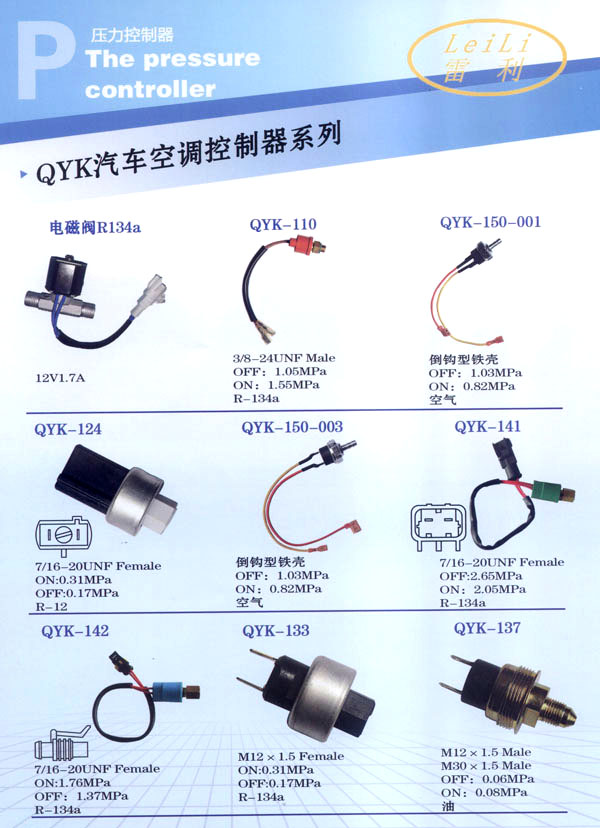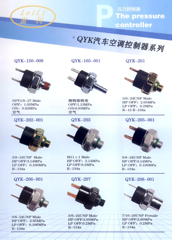 本公司主要生產(chǎn)三大系列產(chǎn)品,(汽車空調(diào)用壓力控制器、壓力傳感器,家用空調(diào)、氣動(dòng)工具壓力控制器)近500種規(guī)格、型號(hào)。據(jù)2013年同類型產(chǎn)品市場(chǎng)統(tǒng)計(jì)結(jié)果,我公司民用壓力控制器占市場(chǎng)份額15%、車用占20%。