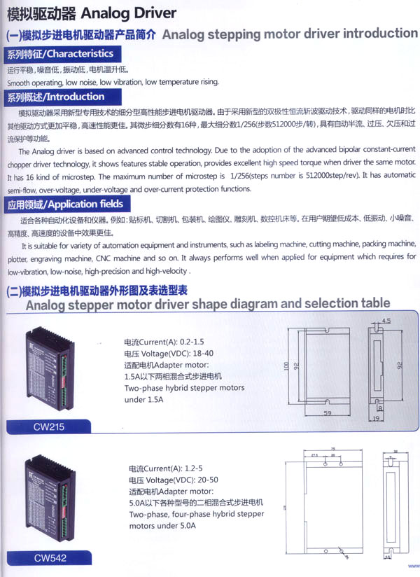 常州創(chuàng)偉電機(jī)電器有限公司成立于1995年,是一家專業(yè)從事步進(jìn)電機(jī)及驅(qū)動(dòng)控制生產(chǎn)、研發(fā)的企業(yè)。現(xiàn)已擁有一批富有經(jīng)驗(yàn)的生產(chǎn)和開發(fā)隊(duì)伍。企業(yè)在多年的發(fā)展過程中,為全國(guó)各地各行業(yè)提供了大量質(zhì)優(yōu)價(jià)廉的步進(jìn)電機(jī)及控制產(chǎn)品。應(yīng)用領(lǐng)域涉及機(jī)器人、音樂噴泉、數(shù)控機(jī)床設(shè)備、工業(yè)電子自動(dòng)化設(shè)備、醫(yī)療器械、廣告器材、舞臺(tái)燈光設(shè)備、印刷設(shè)備、紡織機(jī)械、計(jì)算機(jī)外部應(yīng)用設(shè)備等等。 公司產(chǎn)品先后通過ISO9001質(zhì)量管理體系認(rèn)證,RoHS認(rèn)證,CE認(rèn)證。公司現(xiàn)擁有全自動(dòng)繞線機(jī)、調(diào)壓式充磁機(jī)、萬能外圓磨床、數(shù)控機(jī)床等設(shè)備50余臺(tái),固定資產(chǎn)3000萬元,員工總數(shù)200余人,其中技術(shù)人員25人。年生產(chǎn)各類電機(jī)100萬臺(tái)。依靠齊全的檢測(cè)設(shè)備、完善的檢測(cè)手段、嚴(yán)格的質(zhì)量標(biāo)準(zhǔn),我們一直致力于提高產(chǎn)品的質(zhì)量和性能。對(duì)于每一個(gè)客戶我們都提供自始自終的技術(shù)服務(wù)和產(chǎn)品售后服務(wù)。 我公司的主要產(chǎn)品有20BH系列、28BH系列、35BH系列、39BH系列、42BH系列、42BHH系列、57BH圓形系列、57BHH方形系列、60BHH方形系列、86BH圓形系列、86BHH方形系列,以及110BHH系列的四相(二相)混合式步進(jìn)電。CW60BL、CW63BL、CW70BL、CW92BL系列無刷電機(jī)也相繼上市。另外步進(jìn)電機(jī)驅(qū)動(dòng)器CW215、CW230、CW5045、CW8060、CW6060AC、CW1108以及全新數(shù)字式驅(qū)動(dòng)器CWD230、CWD556、CWD860H、CW2M2208、CW3M2208和閉環(huán)電機(jī)驅(qū)動(dòng)器CWDS556,CWDS660,CWDS860H,CWDS880L,CWDS1108,CWDS2206等系列也暢銷全球。另外本公司也可對(duì)外承接各種步進(jìn)電機(jī)及相關(guān)工控系統(tǒng)的應(yīng)用系統(tǒng)工程。 熱忱歡迎國(guó)內(nèi)外客商前來洽談及合作。