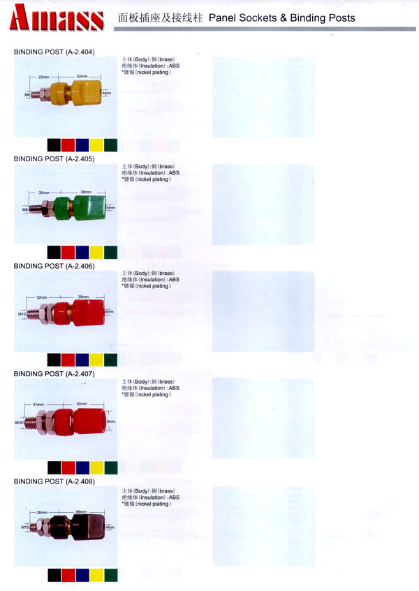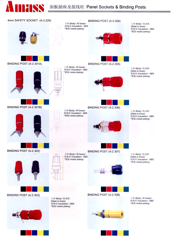 本公司專業(yè)生產(chǎn)各類香蕉插頭,香蕉插座,接線柱,電瓶夾,鱷魚夾,測試導(dǎo)線,測試筆等。產(chǎn)品分2mm/2.5mm/3mm/3.5mm/4mm五大系列,百余種款式, 各種香蕉插廣泛用于儀器、儀表、電力測試、教學(xué)、玩具,視聽設(shè)備、醫(yī)療儀器,保健產(chǎn)品等領(lǐng)域。公司技術(shù)力量雄厚,生產(chǎn)工藝先進(jìn),產(chǎn)品遠(yuǎn)銷港、臺、歐美,并與飛利浦等國際品牌配套。公司本著精益求精的理念,歡迎新老客戶光臨。 我們擁有資深的工程師和豐富的電子產(chǎn)品銷售經(jīng)驗,專業(yè)生產(chǎn)各類電子接插件產(chǎn)品。 香蕉插頭,香蕉插座,電瓶夾,鱷魚夾等品種齊全、 質(zhì)量可靠,致力服務(wù)于通訊、數(shù)據(jù)通信、消費類電子產(chǎn)品、計算機(jī)和計算機(jī)外圍設(shè)備以及工業(yè)應(yīng)用等領(lǐng)域,能給客戶提供全面采購解決方案。 我們秉承穩(wěn)健作風(fēng)、誠實經(jīng)營、合理價格、完善服務(wù)的宗旨,在全體客戶的支持下,公司不斷創(chuàng)新進(jìn)取,業(yè)績蒸蒸日上,已與數(shù)十家電子零件制造商及其分支機(jī)構(gòu)建立密切合作關(guān)系,在國內(nèi)擁有數(shù)百家固定客戶。