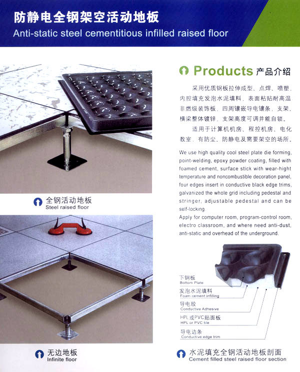 常州天馳活動地板有限公司始創(chuàng)于2010年,原身是常州市武進(jìn)區(qū)橫林天馳機(jī)房地板廠,地處橫林工業(yè)園區(qū),交通便捷。 公司主要生產(chǎn)和銷售各種機(jī)房地板,自創(chuàng)立以來,以品質(zhì)第一,信譽(yù)第一,服務(wù)第一的理念堅(jiān)持做全國最優(yōu)質(zhì)量。 防靜電高架活動地板是計算機(jī)行業(yè)發(fā)展起來的新型鋪地材料,隔離了潮氣,靜電灰塵。最重要的是解決了綜合布線問題,無需預(yù)埋管線,可隨時拆卸,搬移,保證了資訊設(shè)備完整的優(yōu)點(diǎn),適應(yīng)了智能化樓宇中信息自動化技術(shù)對所處環(huán)境的特定要求,避免了廣大客戶的雙重投資,使現(xiàn)代化辦公程度更加高效,辦公場所更加舒適。 公司專業(yè)生產(chǎn)“天馳”系列活動地板,符合國家安全要求,種類完備多樣,其中防靜電瓷質(zhì)高架通路地板除具有普通瓷質(zhì)的裝飾和實(shí)用性外,其耐磨,防水,防火功能優(yōu)于其他同類產(chǎn)品,深受客戶歡迎。 公司大力發(fā)展國內(nèi)外銷售業(yè)務(wù),多次中標(biāo)國內(nèi)重點(diǎn)裝飾工程,例:湖南電視臺,寧波縣變電站,鞍山市120急救指揮中心等。 公司將一如既往開發(fā)和制造一流的產(chǎn)品,愿與廣大有識之士合作發(fā)展,共創(chuàng)美好未來!