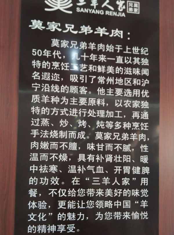 新北區(qū)羅溪佰朝羊肉館(三羊人家農莊)經營羊肉燒制工作40多年,主要供應羊肉、羊湯、全羊宴,價格實惠公道,符合大眾消費,經營面積260平方米,大小包廂20桌。地址:新北區(qū)羅溪鎮(zhèn)莫家塘東莫村29號聯(lián)系人:莫建峰電話:0519-83400579手機:13776881579