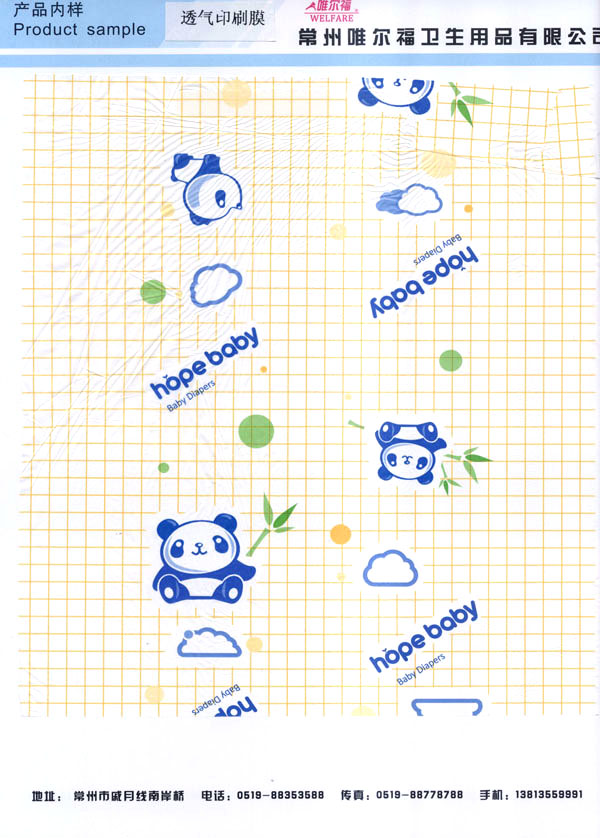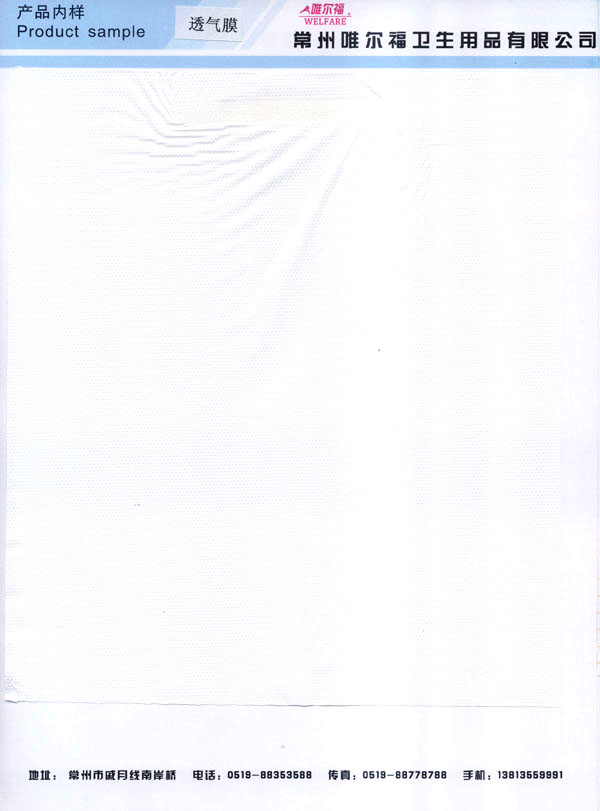 常州唯爾福衛(wèi)生用品有限公司是一家獨(dú)資企業(yè),地處滬寧高速、沿江高速,常州橫山出口交匯處,交通便利、環(huán)境清新。 常州唯爾福衛(wèi)生用品有限公司創(chuàng)建于1998年,公司占地2.5萬平方米,員工165人。 公司現(xiàn)有各類生產(chǎn)線20條。公司現(xiàn)已發(fā)展成為各項(xiàng)管理先進(jìn)、技術(shù)力量雄厚,全年流延膜產(chǎn)量9000噸,華東地區(qū)最具規(guī);牧餮幽どa(chǎn)基地。 公司專業(yè)生產(chǎn)9—80克流延膜,15—80克透氣膜,及各類印刷膜。優(yōu)極柔版印刷,各種復(fù)合膜。廣泛適用于婦女衛(wèi)生用品、嬰兒紙尿褲、成人紙尿褲、成人床墊、寵物墊、醫(yī)用薄膜制品等領(lǐng)域。多年來公司致力于研究和開發(fā)適應(yīng)市場需求的新產(chǎn)品來滿足廣大客戶的需求。