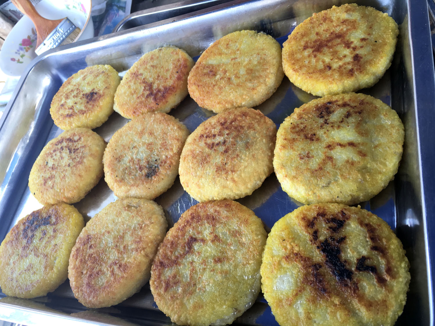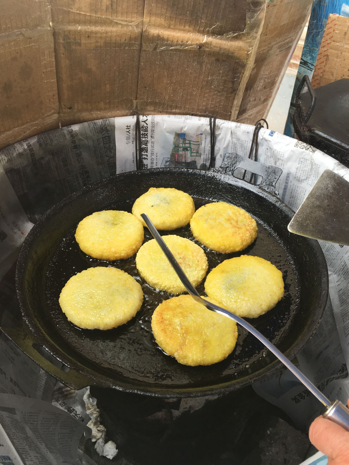 魁元面館,橫山橋江南路,沿街的店鋪。老板娘徐文霞,從公婆手里接過這個店面已有20多年。最具特色的菜品是肉圓跟大排。每天凌晨3點就要起來做準備,菜都是現(xiàn)燒現(xiàn)賣。 特色小菜: 肉圓:有人特意遠道而來打包走 大排面:每天能賣出100來塊大排 大腸 雞蛋:每天煎的雞蛋就差不多300來個 小餛飩、大餛飩 限時供應: 咸鴨蛋、肉粽、蛋黃粽:每天都要包,放爐子燒,在端午前后供應,很好吃。每天都有人打包幾個咸鴨蛋或者粽子拿回家,送人 油酥餅(圖3-4)、糍團餅(圖5-6)、韭菜餅(圖7-8) 油酥餅每天晚上做,涼了更好吃,更酥更脆,里面都是很香的黑芝麻;糍團餅,每天中午擺攤熱了煎鍋開始煎,糯米做成,用菜籽油煎至金黃,餡兒是黑芝麻瓜子仁;韭菜餅是最受歡迎的,每天都有好多人排隊來買。供應時間:每年的4月份到11月份 下午1點到5點半。
