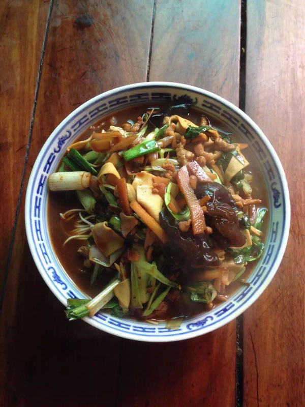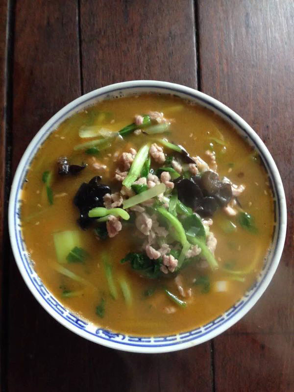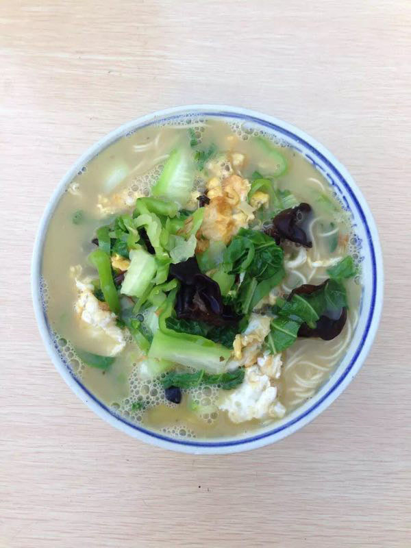 武進區(qū)青城面館經營面積280平方米左右,主要特色是現炒肉絲,素菜蓋澆面,面館創(chuàng)始人今年63歲的王蘭珍,她對美食有著高于常人的悟性。她開過饅頭店,開過小飯館,承包過食堂,燒菜、取料樣樣在行,吃過的人常常贊不絕口。 20世紀初,在跟德興面館的老師傅學了做面手藝后,王蘭珍萌生了開一家面館的想法,除了可以養(yǎng)家糊口,最重要的是想讓更多人嘗嘗自己的手藝。于是,她在自己的住處擺起了幾張桌椅,面館就算正式營業(yè)了。因為家住青城橋,王蘭珍干脆取名“青城面館”。 “從早上5點多開始營業(yè),到下午1點多打烊,一天至少要賣掉300多碗面,用掉近160斤面粉!睘楹吻喑敲骛^的面條如此受歡迎,兒媳婦陸偉紅說秘訣在于湯頭和澆頭。湯頭分白湯和紅湯,白湯是由10斤豬骨頭熬制而成,湯色清澈而味道濃郁;紅湯以骨頭湯作底湯,加入茴香、甘草、草果等20多種中草藥,以及糖、醬油等調味品,鮮而不腥,散發(fā)出陣陣香味。 和一般面館事先燒制好澆頭,放在盆里供客人選擇不同,青城面館的澆頭都是一份份現炒的,特別講究食材的新鮮。就拿暢銷的肉絲蔬菜紅湯面來說,要先起猛火,把肉絲、木耳、蘑菇、青菜等食材放一起煸炒至香,然后澆在撈起的面條上。一碗面出來,現炒的澆頭與面條融合,味道香郁至極。 遙觀人的早晨,醒得有些早。對很多遙觀人來說,美好的一天是從青城面館開始的。那一碗碗現炒的蓋澆面,筋道爽滑、醬香味濃,溫存著他們的胃與記憶,帶來刻進骨子里的家鄉(xiāng)味道。