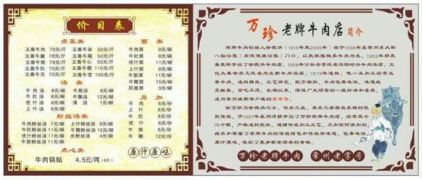 老牌牛肉創(chuàng)始人徐德洪始于1935年在常州東大街八仙浴室門口,以挑擔(dān)擺攤賣牛肉為生,1952年移至縣直街開設(shè)了徐德洪牛肉店。1958年公私合營(yíng)改名為四時(shí)興牛肉店。文化大革命后又改名為立新牛肉店,1979年退休。他一生加工經(jīng)常五香牛肉,選料精良,工藝講究,配方獨(dú)到,牛肉色香味濃,味道純正鮮美,百吃不厭。長(zhǎng)期以來(lái),深得廣大顧客的一致好評(píng)和喜愛,成為常州城家喻戶曉的老字號(hào)。 徐萬(wàn)珍乃徐德洪之女,傳承父業(yè),秉承父親精益求精的優(yōu)良傳統(tǒng),于1997年在同濟(jì)橋開設(shè)了萬(wàn)珍老牌牛肉店,經(jīng)營(yíng)至今二十載,嚴(yán)格選料把關(guān),遵循傳統(tǒng)加工工藝,不加工任何添加劑,繼承和保留了老牌牛肉的傳統(tǒng)特色和傳統(tǒng)老味道,色香味濃,原汁原味,得到了更多新老顧客的青睞。