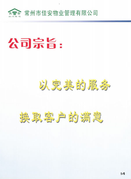 佳安物業(yè)管理有限公司位于常州市新北區(qū)薛家鎮(zhèn),2005年由薛家鎮(zhèn)黨委政府注冊成立,注冊資金50萬元,屬于三級資質企業(yè)。成立之初,佳安物業(yè)作為政屬事業(yè)單位,主要負責管理薛家鎮(zhèn)順園新村安置小區(qū)。隨著薛家鎮(zhèn)經(jīng)濟和人口的發(fā)展,為主動適應經(jīng)濟發(fā)展新常態(tài),全面深化物業(yè)綜合改革,打造具有薛家特色的物業(yè)公司,佳安物業(yè)由政府下屬的事業(yè)單位正式轉變?yōu)楠毩⑦\營的企業(yè),并增資到1000萬元。 2017年6月,公司通過審核被評為“AAA”級信用企業(yè),同月,公司實施ISO9001質量管理體系標準,并于8月通過質量體系認證審核。2018年8月,公司通過了ISO14001環(huán)境管理體系、ohsas18001職業(yè)健康安全管理體系的認證審核。 目前,公司主要承接小區(qū)物業(yè)服務及廠區(qū)外派保安服務、保潔服務等。現(xiàn)公司為薛家鎮(zhèn)順園一村至順園九村安置小區(qū)及奧林匹克花園、怡景名園2處商業(yè)小區(qū)提供物業(yè)服務;為江南農(nóng)村商業(yè)銀行新北區(qū)所有支行、中車鐵馬、投資服務中心、華夏藝博園、薛家幼兒園、薛家小學及薛家中學等單位提供外派保安服務;為薛家鎮(zhèn)中心廣場及松林別墅提供保安服務;為華夏藝博園及投資服務中心提供保潔服務等。 在這十余年中,佳安物業(yè)與時俱進,銳意進取,為地方建設發(fā)展注入動力,為居民和企業(yè)安全保駕護航,尤其是在實踐中,我們積極探索,正逐步摸索出一條適合薛家城鄉(xiāng)一體化建設的社區(qū)物業(yè)管理的新路。希望通過今天的分享,和大家一起探討我們在“管辦分離”等方面的實踐經(jīng)驗,并在此基礎上為薛家的可持續(xù)發(fā)展提供可借鑒、推廣的新型物業(yè)管理之路。