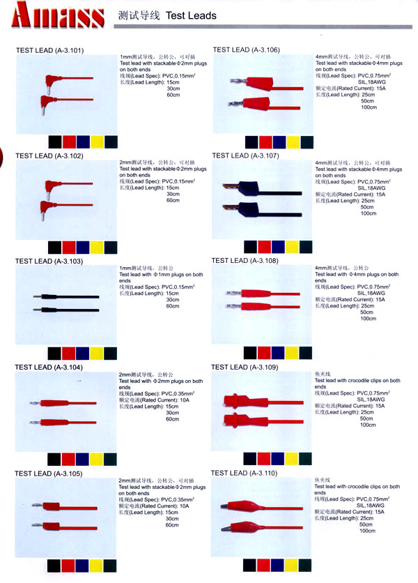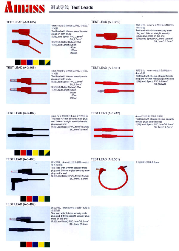 本公司專業(yè)生產(chǎn)各類香蕉插頭,香蕉插座,接線柱,電瓶夾,鱷魚夾,測試導(dǎo)線,測試筆等。產(chǎn)品分2mm/2.5mm/3mm/3.5mm/4mm五大系列,百余種款式, 各種香蕉插廣泛用于儀器、儀表、電力測試、教學(xué)、玩具,視聽設(shè)備、醫(yī)療儀器,保健產(chǎn)品等領(lǐng)域。公司技術(shù)力量雄厚,生產(chǎn)工藝先進(jìn),產(chǎn)品遠(yuǎn)銷港、臺(tái)、歐美,并與飛利浦等國際品牌配套。公司本著精益求精的理念,歡迎新老客戶光臨。 我們擁有資深的工程師和豐富的電子產(chǎn)品銷售經(jīng)驗(yàn),專業(yè)生產(chǎn)各類電子接插件產(chǎn)品。 香蕉插頭,香蕉插座,電瓶夾,鱷魚夾等品種齊全、 質(zhì)量可靠,致力服務(wù)于通訊、數(shù)據(jù)通信、消費(fèi)類電子產(chǎn)品、計(jì)算機(jī)和計(jì)算機(jī)外圍設(shè)備以及工業(yè)應(yīng)用等領(lǐng)域,能給客戶提供全面采購解決方案。 我們秉承穩(wěn)健作風(fēng)、誠實(shí)經(jīng)營、合理價(jià)格、完善服務(wù)的宗旨,在全體客戶的支持下,公司不斷創(chuàng)新進(jìn)取,業(yè)績蒸蒸日上,已與數(shù)十家電子零件制造商及其分支機(jī)構(gòu)建立密切合作關(guān)系,在國內(nèi)擁有數(shù)百家固定客戶。