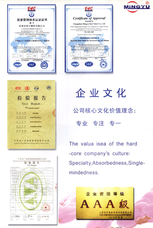 常州市明宇鋼管有限公司位于江南水鄉(xiāng)常州與無(wú)錫之間,緊臨滬寧高速,312國(guó)道,沿江高速,錫宜高速,京杭大運(yùn)河,交通極為方便。 公司創(chuàng)建于1992年,固定資產(chǎn)2500萬(wàn)元,車(chē)間面積15000平方米,現(xiàn)有職工220人,技術(shù)員30人,穿孔機(jī)組外徑40-80兩套,冷拔機(jī)組10T-80T八套,輥底式熱處理爐一套,形成年產(chǎn)30000噸各類(lèi)無(wú)縫鋼管的生產(chǎn)能力。另有半自動(dòng)鋼鋸切割機(jī)八臺(tái),儀表倒角機(jī)18臺(tái),電鍍鋅槽3條,形成從切割、倒角、電鍍的鋼管深加工能力,年產(chǎn)紡機(jī)牽伸管、紗管、編織機(jī)筒管1000萬(wàn)支的生產(chǎn)能力。 集行業(yè)之精華,全新的設(shè)備,完備的檢測(cè)手段,嚴(yán)格的管理措施,良好的服務(wù)宗旨,高素質(zhì)的員工隊(duì)伍,在多年的生產(chǎn)實(shí)踐經(jīng)驗(yàn)基礎(chǔ)上,保障了出廠產(chǎn)品的質(zhì)量,以質(zhì)量求生存,以信譽(yù)求市場(chǎng),以科技求發(fā)展,以?xún)r(jià)格求客戶(hù)的經(jīng)營(yíng)理念,竭誠(chéng)為社會(huì)各界用戶(hù)提供一流服務(wù)。