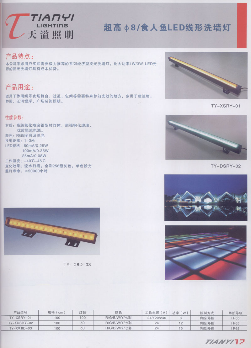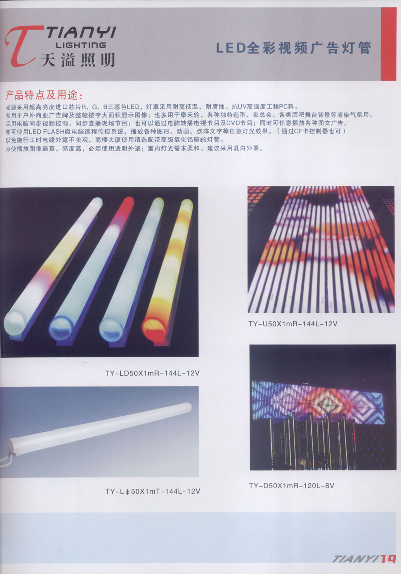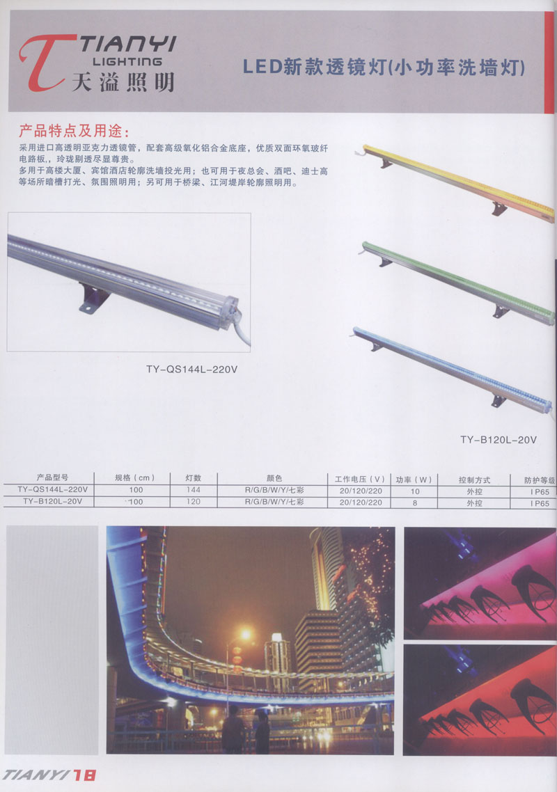 天溢照明是中國(guó)領(lǐng)先的專業(yè)從事LED廣告照明裝飾燈具設(shè)計(jì)、系統(tǒng)開發(fā)、燈具制造、工程服務(wù)一體的專業(yè)型公司,本公司產(chǎn)品已廣泛應(yīng)用于全國(guó)大多數(shù)城市夜景亮化景觀照明、酒店休閑娛樂夜場(chǎng)夢(mèng)幻燈光、戶內(nèi)外廣告宣傳、建筑及室內(nèi)照明以及家居裝飾等場(chǎng)合。