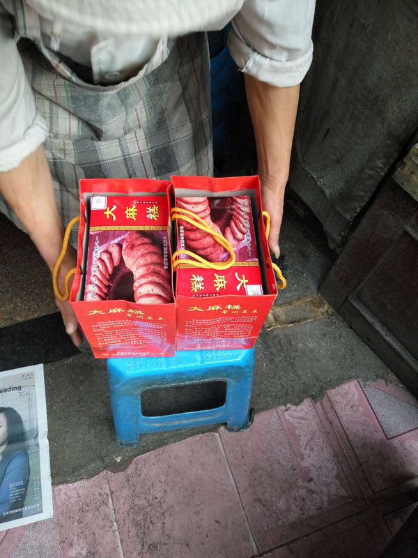 常州人夏亞寶的大麻糕技術(shù)是上世紀(jì)80年代更著新橋麻糕店的師傅周金生學(xué)的,1999年開(kāi)店至今,在附近一帶做得小有名氣,向?qū)W校供應(yīng)麻糕,整整6年。 “做大麻糕太辛苦,半夜爬起來(lái)準(zhǔn)備熱爐子、和面、做餡,年輕人吃不了這苦,15年我都沒(méi)請(qǐng)人,和老婆一起打過(guò)來(lái)的!毕膩唽氈钢直凵系臓C傷的痕跡說(shuō),能堅(jiān)持烤桶制作大麻糕的真心不多了。夏亞寶的烤桶是自制的,爐心常州買不到,他托人從無(wú)錫買來(lái),15年前85元一個(gè),前年漲到150元!翱就暗臓t心其實(shí)就是以前船上人家用的行爐”,去底后鑿個(gè)洞,然后外面加上隔熱材料,最后貼上鐵片”。 15年,這已經(jīng)是第三只貼桶了。