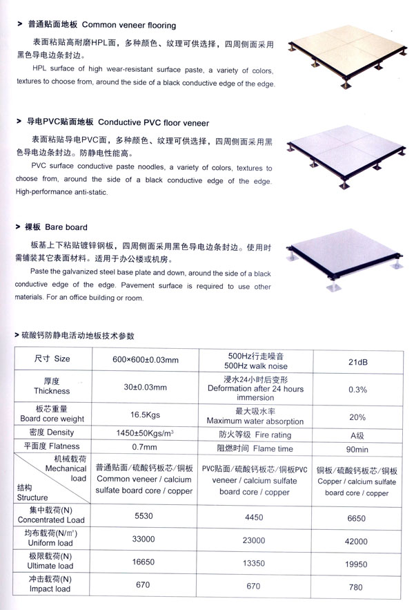 公司廠區(qū)面積30000平方米,擁有全鋼地板生產(chǎn)線兩條,木基、硫酸鈣基地板生產(chǎn)線各一條,年綜合產(chǎn)能100萬(wàn)平方米。生產(chǎn)蘇杰牌防靜電地板系列和蘇杰牌網(wǎng)絡(luò)地板系列,主要產(chǎn)品有全鋼防靜電架空地板、全鋼OA網(wǎng)絡(luò)地板、瓷磚貼面防靜電地板、硫酸鈣防靜電地板、木基防靜電地板、鋁合金防靜電地板、防靜電通風(fēng)地板等。