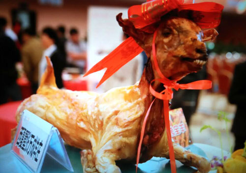 張萬成羊莊一家綜合性的公司,下設(shè)酒店,羊產(chǎn)品加工廠,屠宰廠,山羊養(yǎng)殖場。 酒店位于常州西夏墅浦河村,酒店羊宴規(guī)模占地30畝,酒店主要經(jīng)營特色全羊宴。 一個祖?zhèn)鞯臍⒀虼髴,傳到張萬成,已是第六代了。張家的羊肉,素來以肉質(zhì)鮮美著稱,張萬成羊莊的主人張建龍是第六代傳人,張家的羊肉素來以肉質(zhì)鮮美著稱,從常州新北區(qū)沿黃河西路往機(jī)場方向直行至羅溪右轉(zhuǎn),穿過滬寧高速高架橋后不遠(yuǎn)處左拐沿翠屏湖路直走便能看到張萬成羊莊,酒店上下共有三層,2000多平方米經(jīng)營面積,能同時接待近30桌客人的規(guī)模。有自己的羊圈和屠宰場,每天殺20多只,菜式近100道。光是原料,就從原來羊身上的幾個主要部位,增加到除了羊牙齒以外的一只整羊全部可以入菜。烹制方式,更是在本土單一的燒、炒、煮基礎(chǔ)上,借鑒了東北、廣東、四川等地的烹羊特色,增加了蒸、涮、烤、煎、炸等多種方式。 注重原汁原味的冷菜 白切羊肉:精選羊頸部的活肉精制而成,肥瘦適中,絲毫沒有一般羊肉的膻味,沾少許張萬成羊莊秘制的醬料,口感非常好。 美味羊舌:張家的羊舌感覺是用特殊的醬料腌制過的,咸中略有甜味,口感鮮嫩卻肥而不膩,味道很香。 除了白切羊肉和羊舌以外還有許多冷菜品種,如羊肚、羊心、羊耳朵等。。 火候控制精準(zhǔn)的炒菜 炒羊肝:地道的農(nóng)家風(fēng)味,與大蒜葉同炒,蒜香濃郁,羊肝鮮嫩,這羊肝可是火候菜,羊肝鮮嫩與否不但取決于廚師對火候的掌握,還在于上桌放置時間的長短,所以羊肝上桌后要盡快食用,看羊肝是否鮮嫩,只需用筷子挑起并輕輕抖動,有彈性者為佳。 美味羊?qū)殻阂跃曼S、鮑味菇爆炒的羊?qū)殻f是滋補(bǔ)壯陽的一道金貴菜,配料講究的燒菜系列 宮廷燴羊肚:較為金貴的菜品,配菜貴于主料,是以名貴的素鮑和新鮮的筍絲與羊肚同煮,口感濃郁,營養(yǎng)豐富。 海參白燒羊肉:將取自7個月大羔羊身上的帶皮腿肉與海參一同煨煮,菜肴美容滋補(bǔ),兩種鮮味互相補(bǔ)益達(dá)到完美交融狀態(tài),口感甚佳。 魚羊鮮:新鮮的青魚配上羊肉,既有本地羊肉的肥嫩,又有魚肉的鮮香,鮮!鮮!古代人造字就是有道理!”店里可以根據(jù)客人的需要配以魚回魚、鯰魚、鱖魚等。 特色的羊宴點(diǎn)心 羊肉餛飩:羊莊老板自創(chuàng)的羊宴點(diǎn)心,看似普通的油燜跑蛋卻另有乾坤,將蛋掀開便能看見藏于其中的羊肉菜餡餛飩,菜和肉都是自家新鮮的原料,很好吃。 手工搟面:不知道是因?yàn)槊媸钦嬲檬止{制還是因?yàn)榧尤肓缩r味十足的羊湯,總之味道非常好,面勁道,湯也鮮美! 張萬成羊莊的羊湯也是遠(yuǎn)近聞名,因?yàn)槭亲鎮(zhèn)鞯氖炙,做出來的羊湯不腥不膻,香醇不膩,味道十分鮮美,加入粉絲或者面條更是難得的美味。