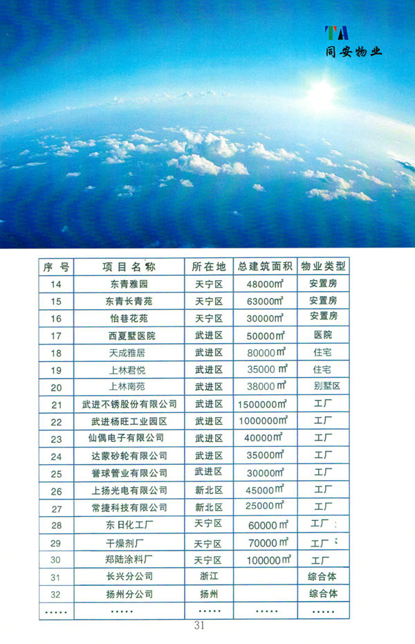 公司發(fā)展至今,員工總數(shù)近千余人,大專以上學(xué)歷200多人,中高級(jí)技術(shù)人員160人,維修人員140人,物業(yè)管理師80名,公司接管面積達(dá)3100000多平方米,設(shè)涉及住宅小區(qū),別墅,大型游樂場(chǎng),公園,醫(yī)院,廠區(qū),商業(yè)等。公司的工作管理逐步導(dǎo)入ISO9001質(zhì)量體系和ISO4001環(huán)境管理體系和GB/T28001職業(yè)健康安全管理體系,嚴(yán)格按照質(zhì)量體系的標(biāo)準(zhǔn)執(zhí)行。