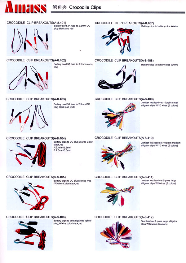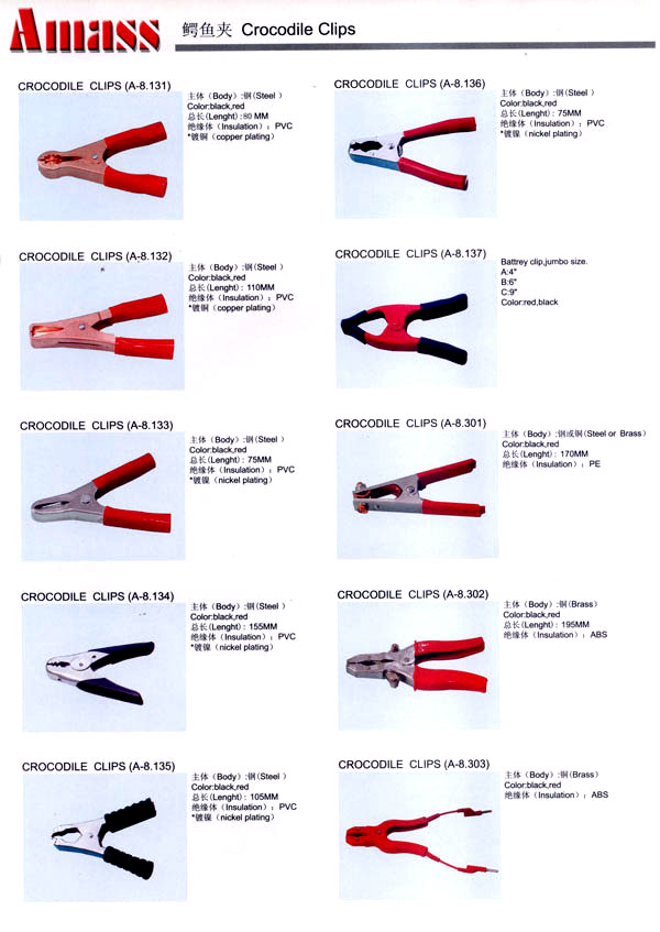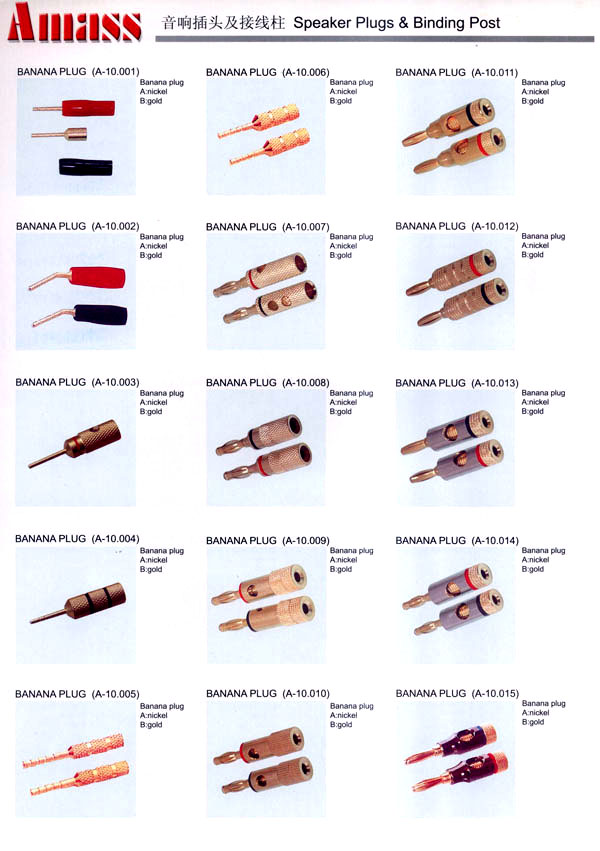 本公司專業(yè)生產(chǎn)各類香蕉插頭,香蕉插座,接線柱,電瓶夾,鱷魚(yú)夾,測(cè)試導(dǎo)線,測(cè)試筆等。產(chǎn)品分2mm/2.5mm/3mm/3.5mm/4mm五大系列,百余種款式, 各種香蕉插廣泛用于儀器、儀表、電力測(cè)試、教學(xué)、玩具,視聽(tīng)設(shè)備、醫(yī)療儀器,保健產(chǎn)品等領(lǐng)域。公司技術(shù)力量雄厚,生產(chǎn)工藝先進(jìn),產(chǎn)品遠(yuǎn)銷港、臺(tái)、歐美,并與飛利浦等國(guó)際品牌配套。公司本著精益求精的理念,歡迎新老客戶光臨。