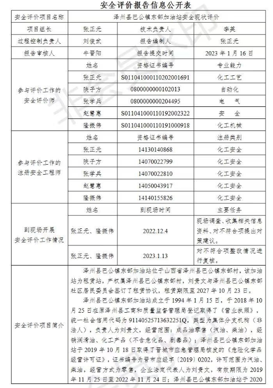 澤州縣巴公鎮(zhèn)東郜加油站安全現(xiàn)狀評(píng)價(jià)