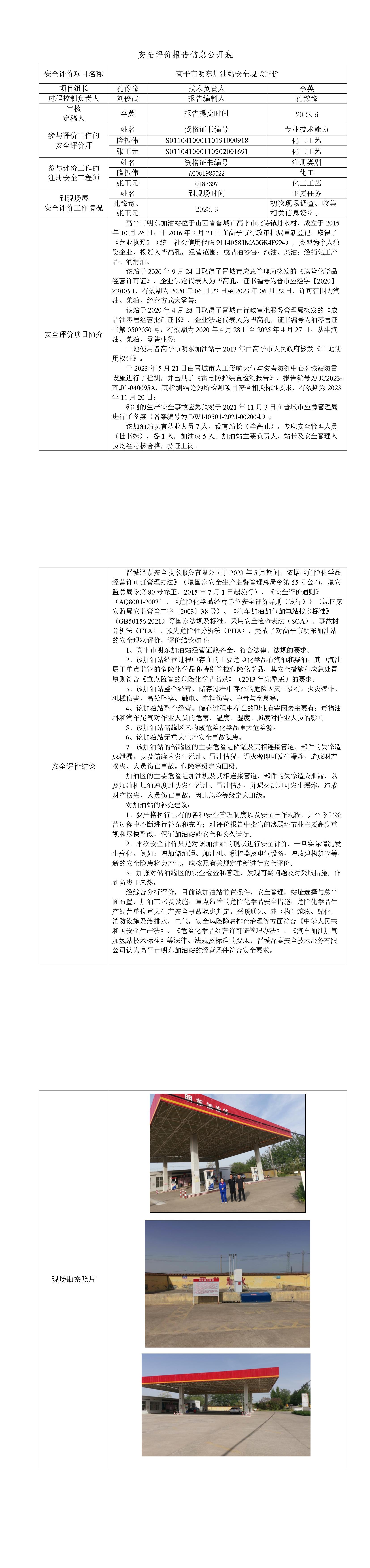 高平市明東加油站安全現(xiàn)狀評(píng)價(jià)
