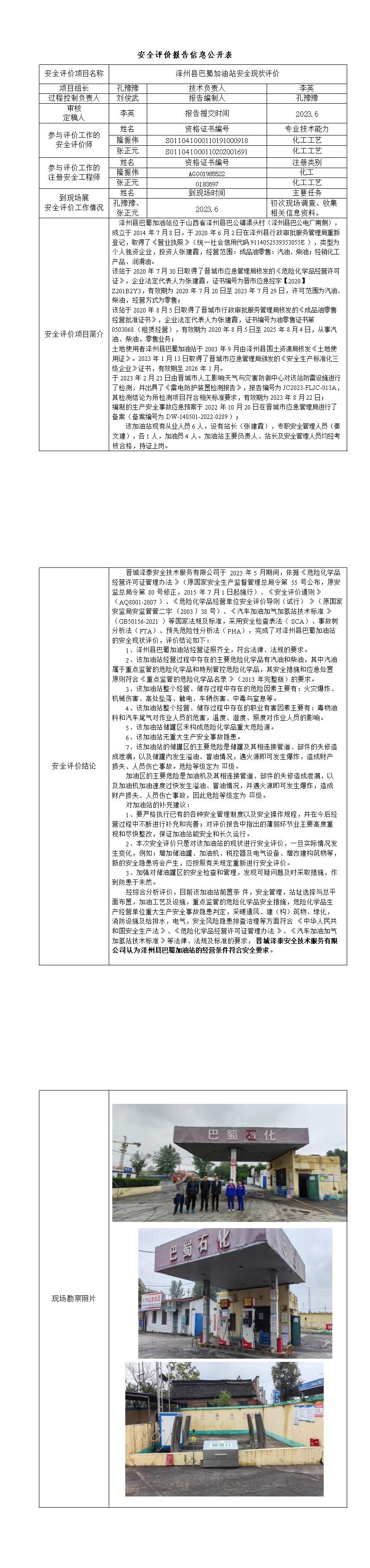 澤州縣巴蜀加油站安全現(xiàn)狀評價