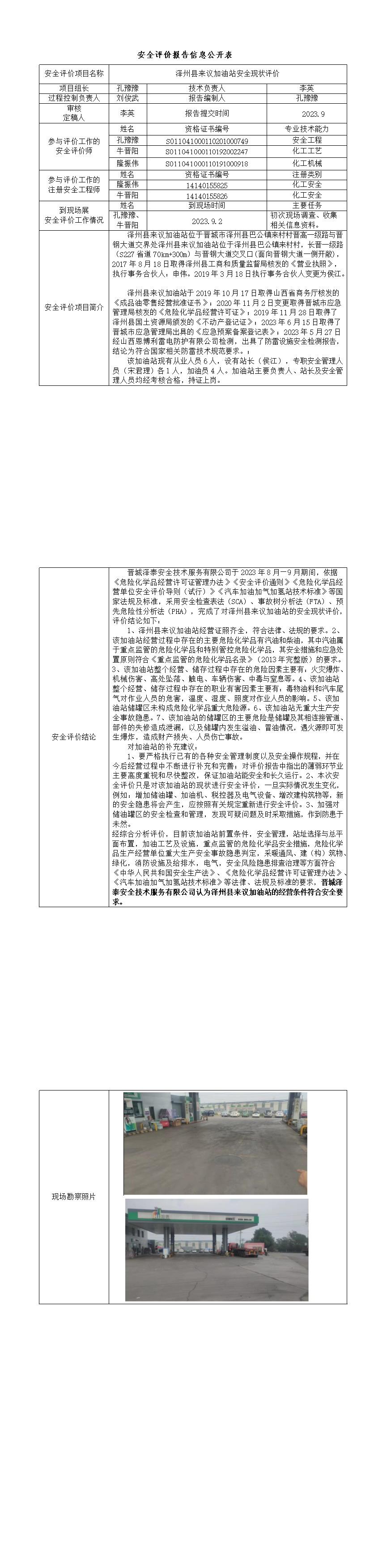 澤州縣來議加油站安全現(xiàn)狀評(píng)價(jià)