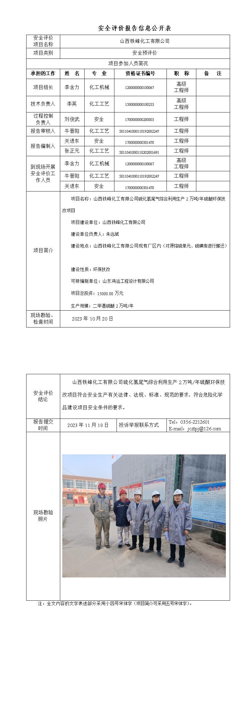 山西鐵峰化工有限公司安全預(yù)評價(jià)