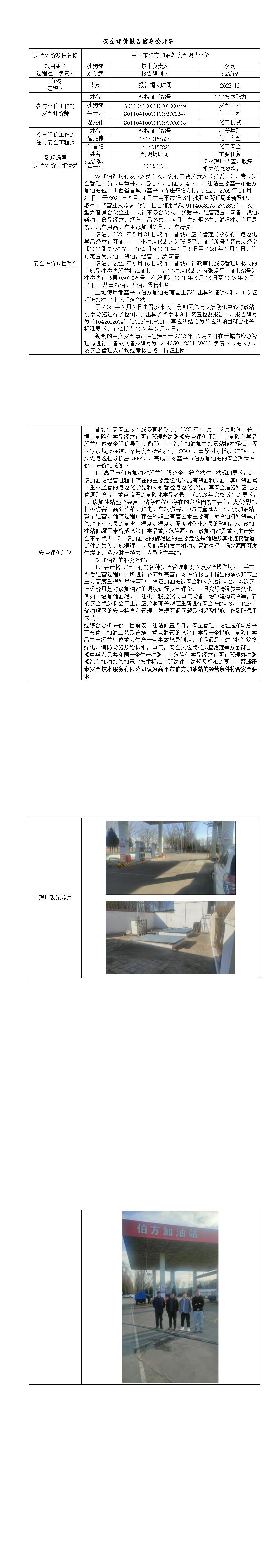 高平市伯方加油站安全現(xiàn)狀評價