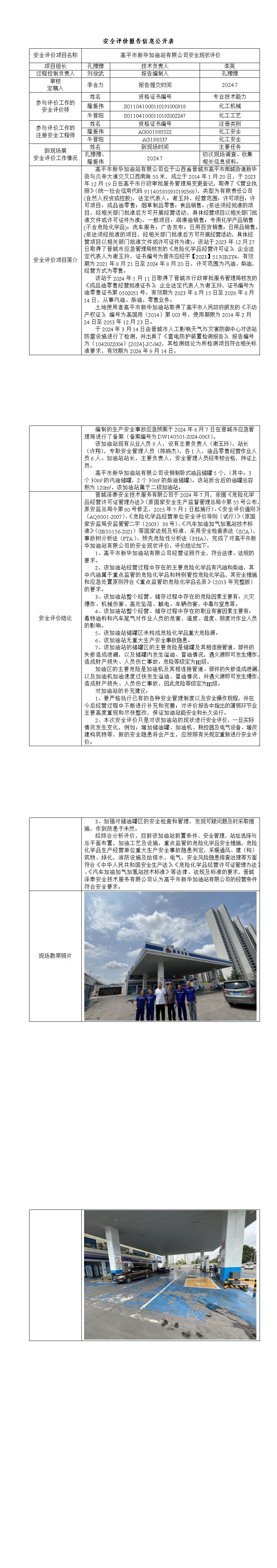 高平市新華加油站有限公司安全現(xiàn)狀評價