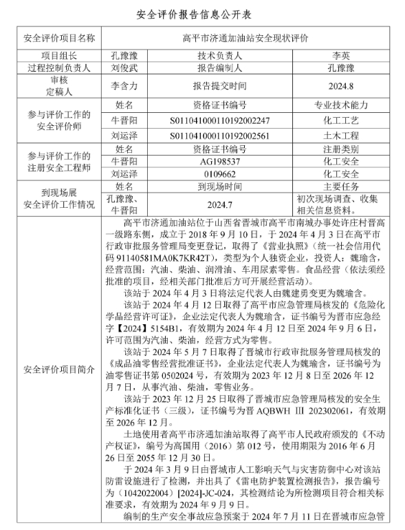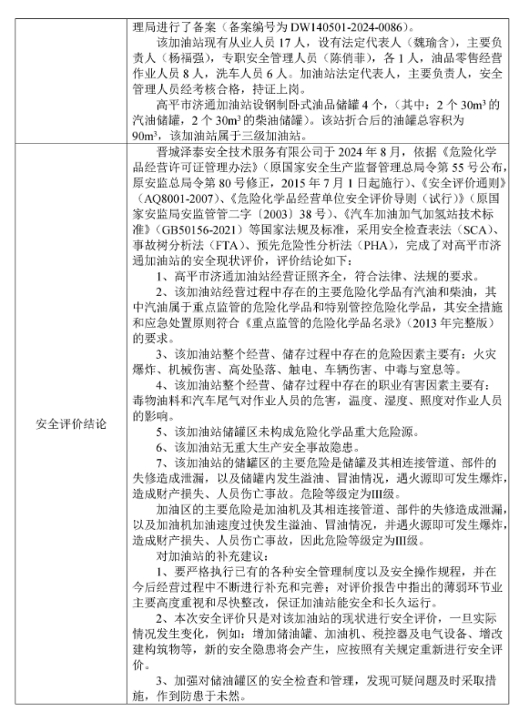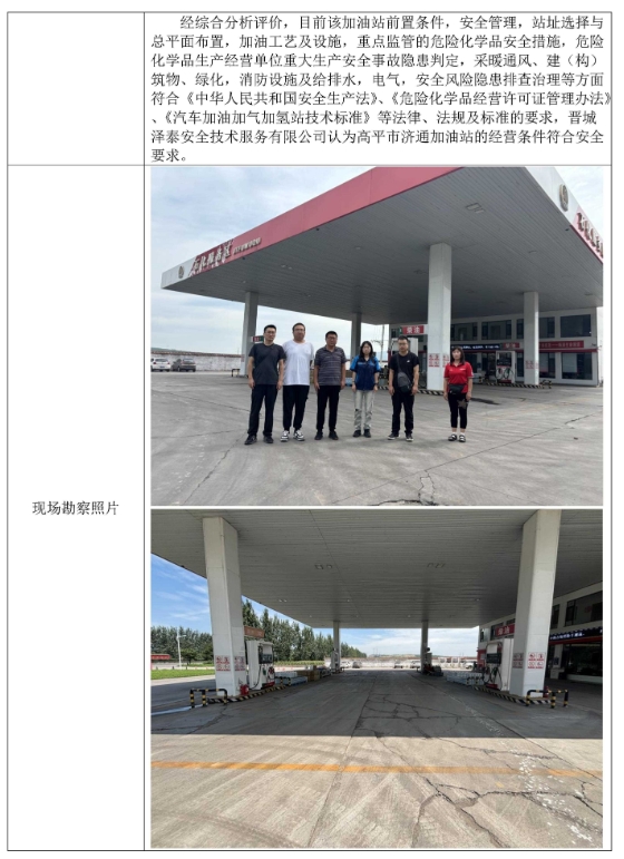高平市濟(jì)通加油站安全現(xiàn)狀評(píng)價(jià)