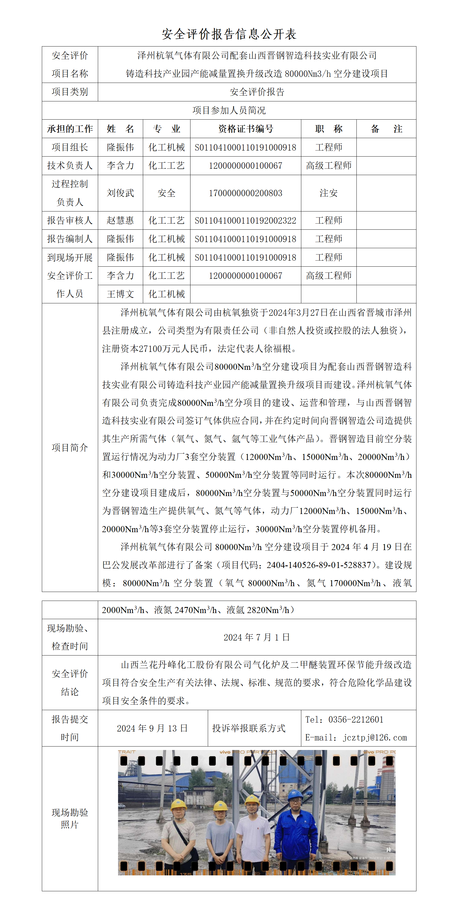 澤州杭氧氣體有限公司配套山西晉鋼智造科技實業(yè)有限公司鑄造科技產(chǎn)業(yè)園產(chǎn)能減量置換升級改造80000Nm3/h空分建設(shè)項目